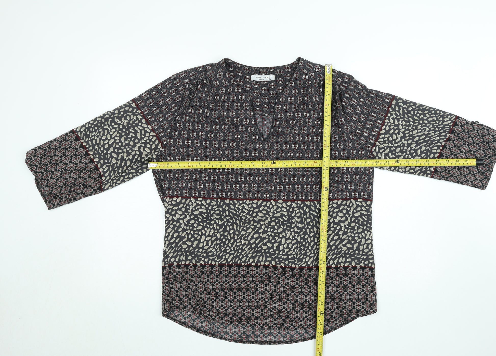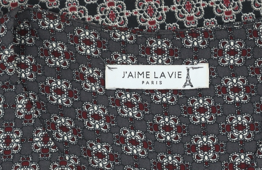 Add a touch of Parisian charm to your wardrobe with this beautiful J’aime La Vie Women’s Tunic Blouse. Designed in a relaxed, flowing silhouette, this midweight woven top features an eclectic patchwork-inspired geometric pattern in shades of deep burgundy, cream, and charcoal, offering both depth and sophistication. Its effortlessly chic 3/4 length sleeves and V-neckline provide just the right amount of detail for an everyday elegant look. Crafted from 100% polyester, the blouse is lightweight, breathable, and easy to care for – ideal for casual outings, travel, or transitional seasons like spring and autumn. The relaxed fit and pullover style make it comfortable to wear, while the intricate geometric print aligns perfectly with a modern bohemian-inspired aesthetic.Perfect when paired with jeans, tailored trousers, or a skirt, this versatile top transitions seamlessly from daywear to evenings out. Whether you’re heading to brunch with friends, exploring a new city, or dressing for easy sophistication, this J’aime La Vie blouse promises timeless appeal.In excellent pre-owned condition with no visible flaws, this tunic offers designer quality at great value. Designed for women who appreciate stylish ease, it captures a blend of casual comfort and refined femininity – a wardrobe staple you’ll reach for again and again. Embrace effortless French-inspired style and elevate your daily look with this stunning J’aime La Vie tunic blouse – where everyday wear meets timeless elegance.