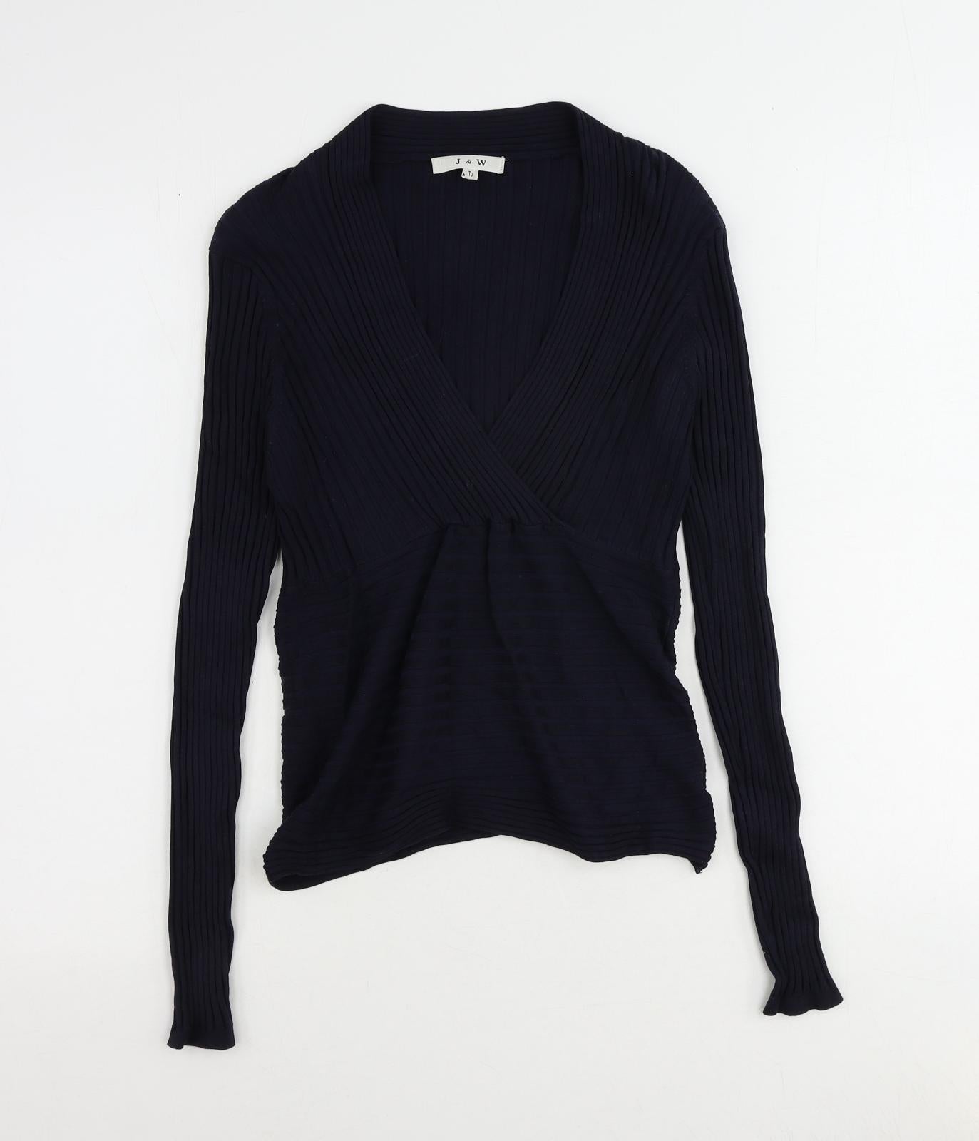 Womens Blue V-Neck Silk Pullover Jumper One Size