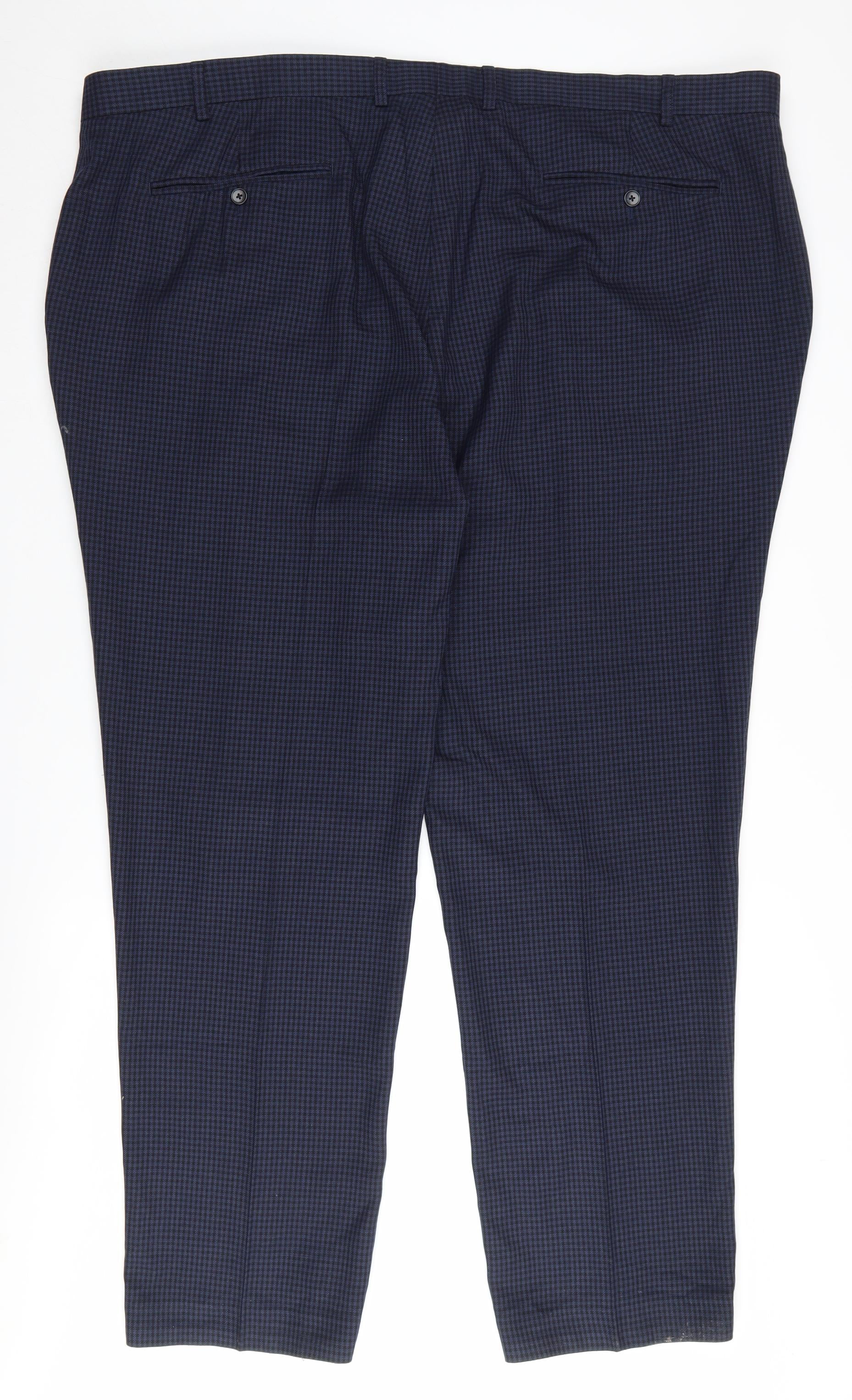 Men's Blue Check Trousers, Size 50R, Regular Fit