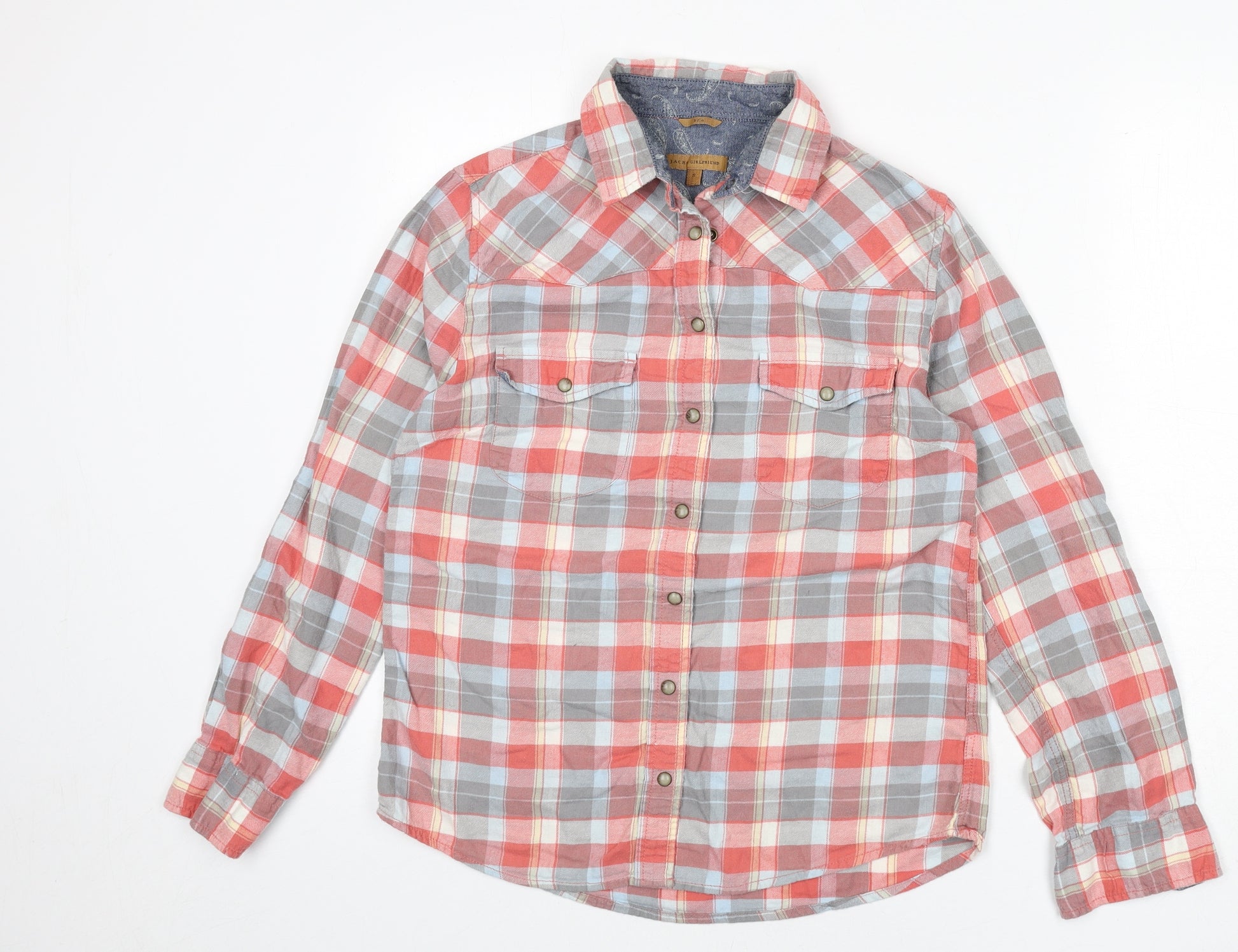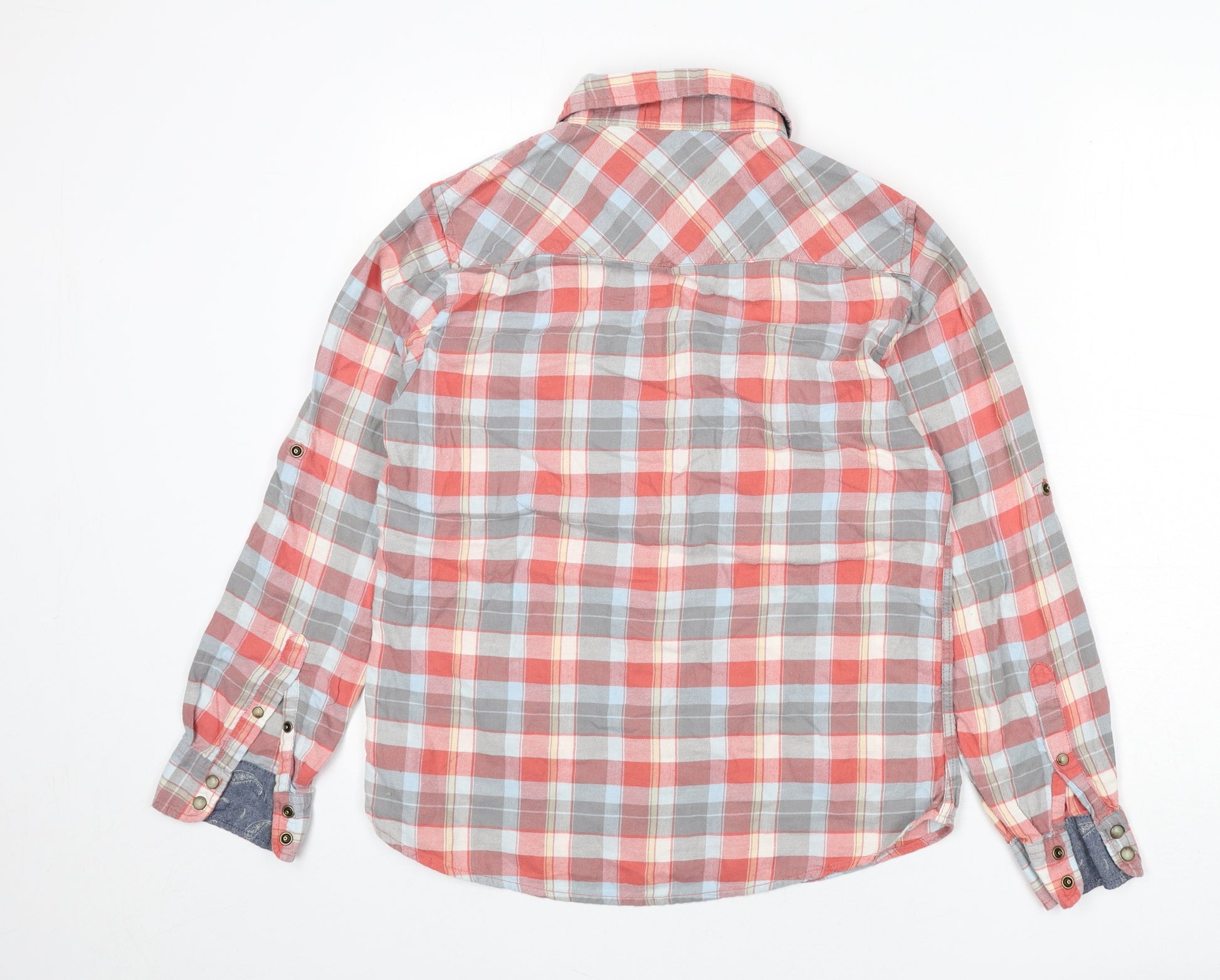 Womens Multicoloured Plaid 100% Cotton Basic Button-Up Size S Collared