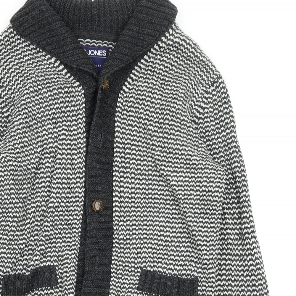 Mens Multicoloured Houndstooth Cardigan Jumper Size M