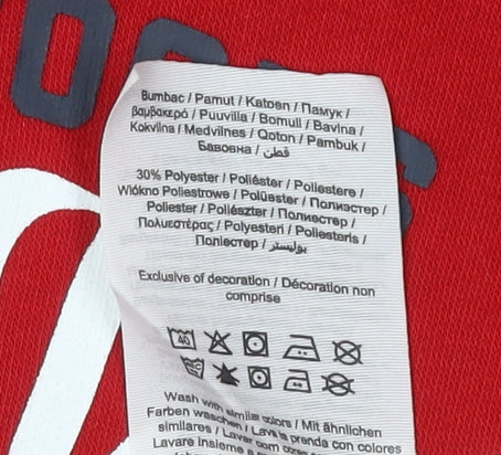Upgrade your young one's casual wardrobe with this vibrant red hoodie from Jack & Jones, designed to offer both style and comfort. This pullover hoodie is perfect for boys, fitting a typical size for 14-year-olds. Crafted from a quality blend of 70% cotton and 30% polyester, it ensures durability and softness against the skin. The distinct Jack & Jones logo embellishes the front as a trendy accent, adding a cool touch to the garment.Featuring a convenient and cosy hood, this hoodie is well-suited for all seasons, offering warmth and style year-round. The graphic print pattern aligns with current fashion trends, ensuring your child will stand out in any setting, be it school or casual outings.The long sleeves and regular fit offer comfort and flexibility, making it an ideal choice for daily wear. While the item is marked in 'Good' condition, some white marks are visible on the front pocket area, adding to its unique character and appeal for those who appreciate authentic worn-in fashion statements.Machine washable for easy care, this hoodie combines practical wearability with trendy design, ensuring your kid looks effortlessly stylish without compromising on comfort. Grab this versatile piece today, available at a fantastic price, and let your child enjoy the blend of functionality and fashion.