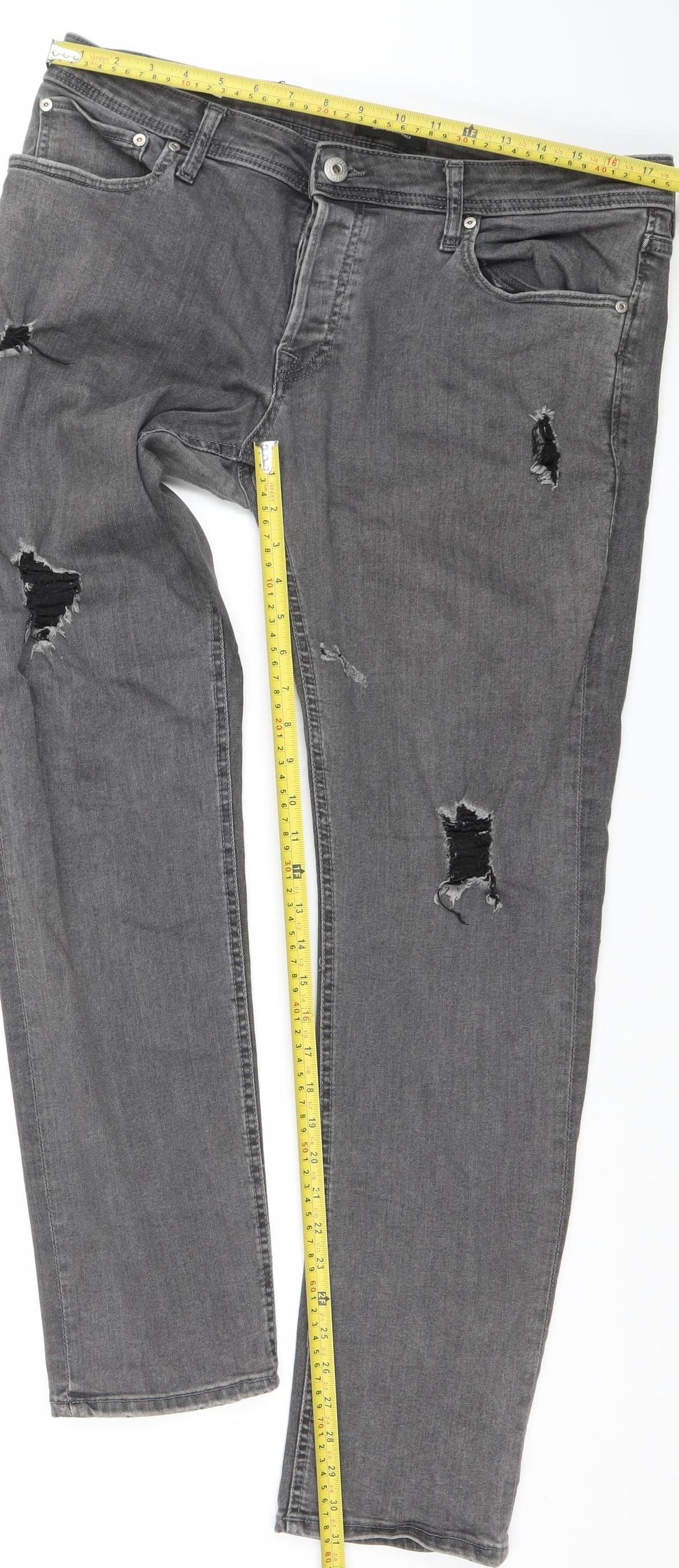 Jack & Jones Men’s Grey Denim Distressed Straight Jeans 38W 32L