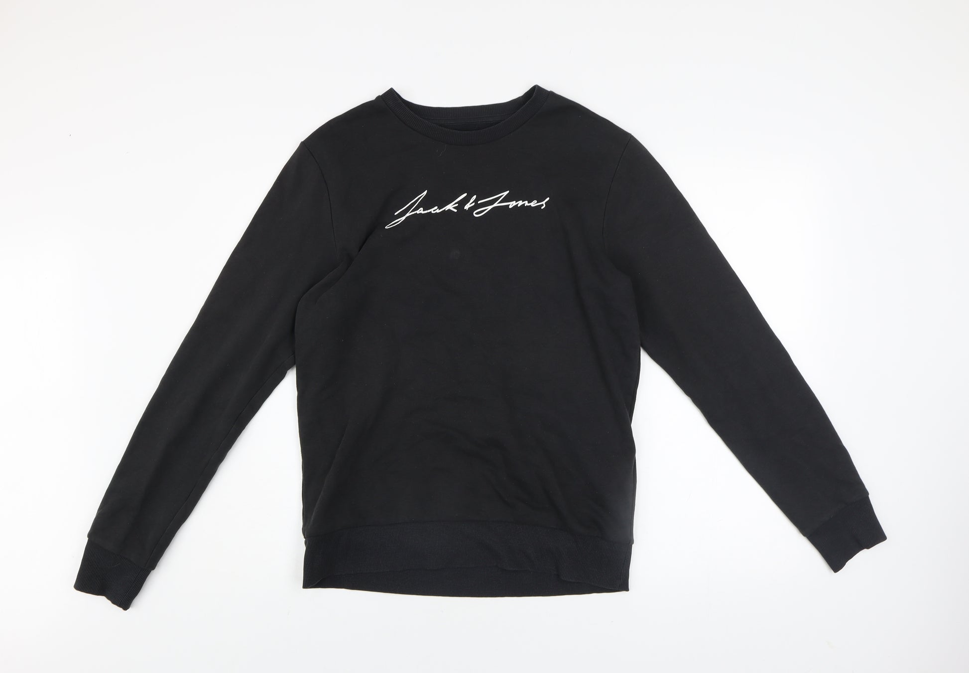 Jack & Jones Mens Black Logo Pullover Sweatshirt Size S
