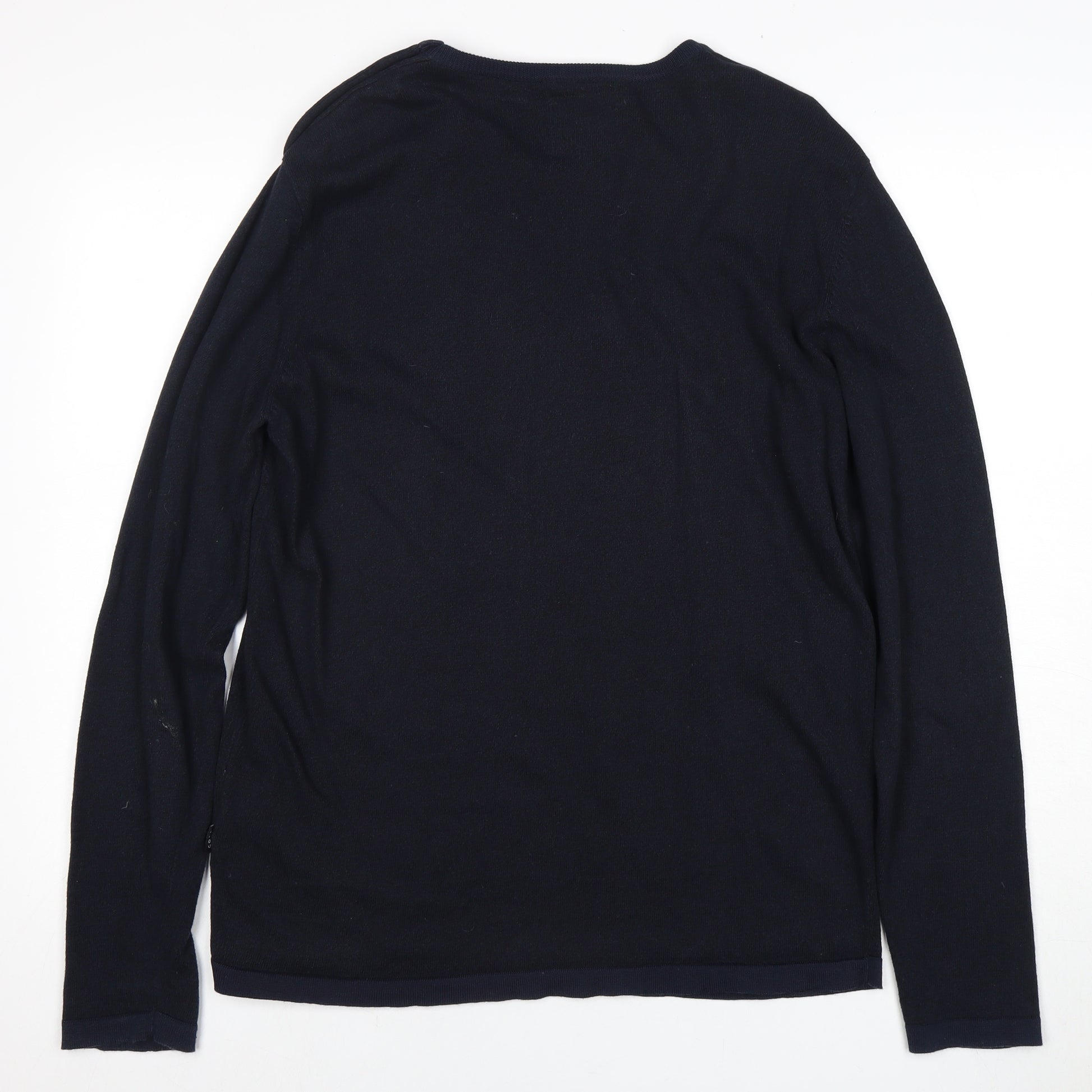 This classic Jack & Jones men's long sleeve T-shirt in black is a wardrobe essential, offering a comfortable and stylish option for everyday wear. Made from 100% cotton, this solid colour T-shirt features a crew neckline and a regular size fit in size L, ensuring it pairs seamlessly with any outfit. The machine washable garment is easy to care for, making it perfect for any man's casual collection. Although exhibiting minimal wear, it maintains an excellent condition, with no noticeable flaws or tags, providing an excellent choice for smart casual occasions. Whether paired with jeans or layered under a jacket, the versatile and timeless design of this T-shirt makes it a fantastic addition to any collection.