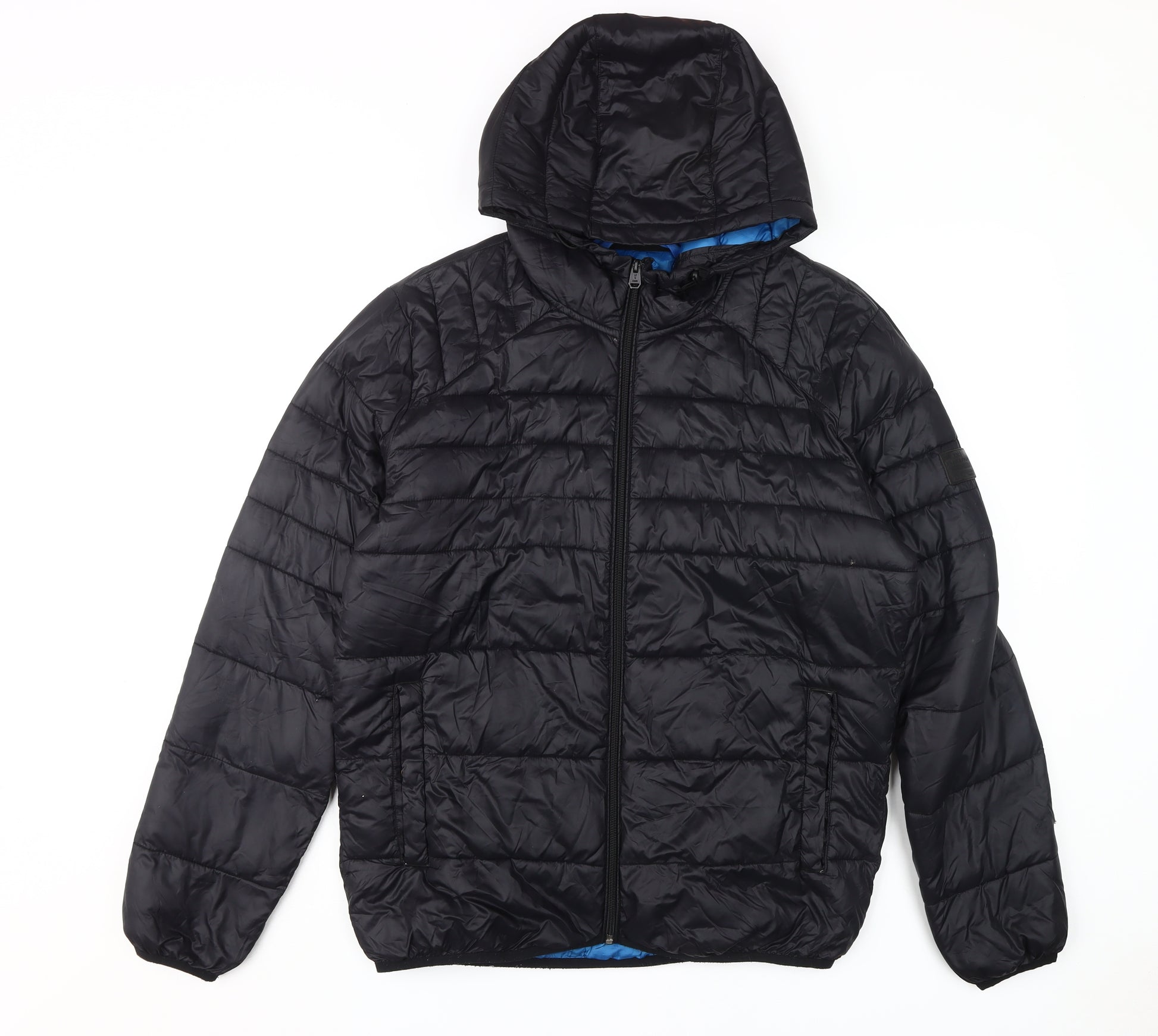Jack & Jones Men's Black Puffer Jacket L Hooded