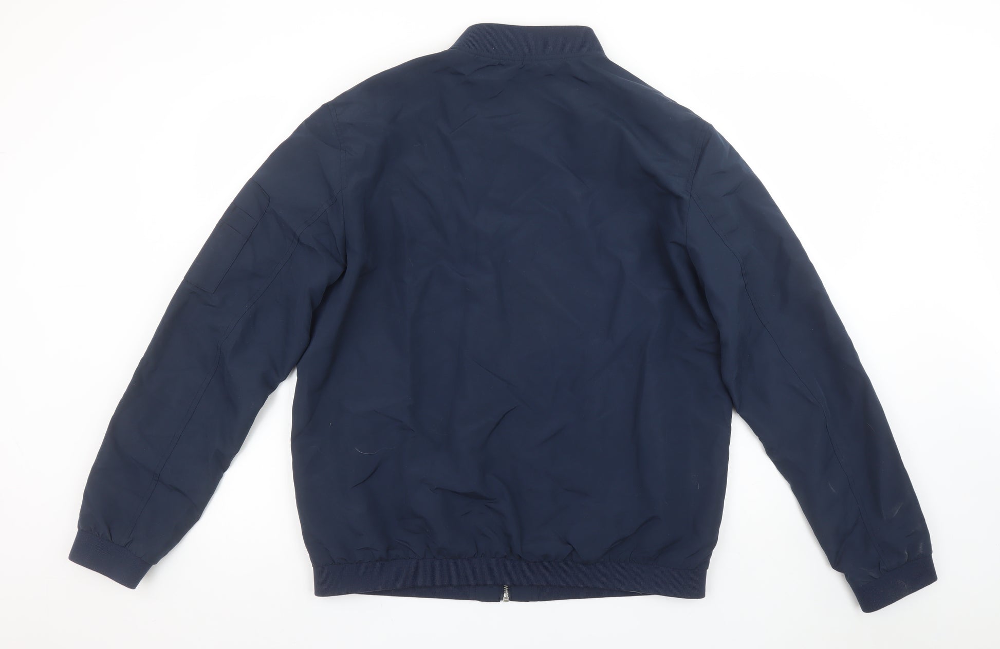 Add instant cool to your casual wardrobe with this Jack & Jones men's blue bomber jacket, crafted in durable polyester with classic styling. Designed for everyday wear, this versatile jacket offers the perfect balance between style and practicality. The sleek blue tone complements any outfit, from jeans and trainers to chinos and boots, making it an easy go-to choice for transitional seasons. Featuring a full front zip closure and zip accents on the pockets and sleeve, this jacket ensures secure storage while maintaining a clean, contemporary look. The elasticated waist and cuffs provide a comfortable fit, keeping warmth in and the wind out. Made from 100% polyester, it is lightweight yet wind-resistant, perfect for layering during autumn, spring, or mild winter days. The stand-up collar gives a refined finish, while the soft polyester lining ensures day-long comfort. In excellent pre-owned condition with minimal signs of wear, this bomber jacket shows quality craftsmanship and attention to detail. Ideal for casual and travel wear, it’s a timeless staple from Jack & Jones—a brand known for its dependable modern menswear. Whether you’re out for a weekend stroll, catching up with friends, or heading to work, this jacket effortlessly elevates your street style. Easy to care for and machine washable, it combines function with fashion in a piece you’ll reach for year after year. A staple item for men who appreciate well-made, effortlessly stylish outerwear. Snap up this essential bomber jacket for a quick wardrobe upgrade that delivers both comfort and confidence.
