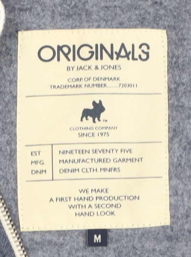 Jack & Jones Mens Grey Pullover Hoodie M Graphic Logo Hooded Sweatshirt