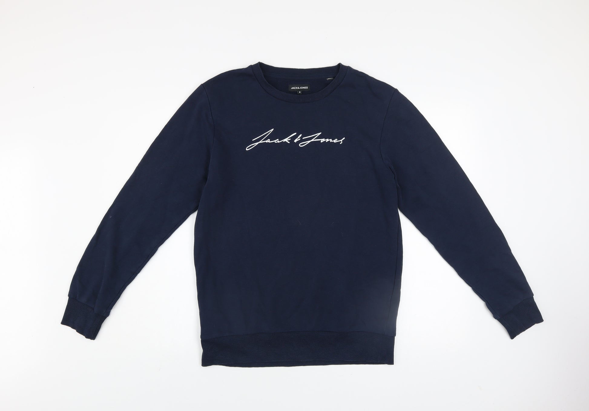 Upgrade your casual wardrobe with this stylish Jack & Jones men's blue pullover sweatshirt. Expertly crafted from a comfortable blend of 60% cotton and 40% polyester, it offers both breathability and durability — ideal for everyday wear. The soft fleece fabric inside ensures warmth and comfort during cooler seasons, making it a versatile piece for autumn, winter, or spring. Designed in a rich navy-blue hue, it features the signature Jack & Jones logo embroidered across the chest, adding a subtle yet distinctive brand accent. The sweatshirt has a classic crew neck, long sleeves, and ribbed trims for a snug, shape-retaining fit. Its timeless pullover style makes it easy to pair with jeans, joggers, or chinos for a relaxed yet polished look. Perfect for both lounging and layering, this sweatshirt embodies modern streetwear simplicity while maintaining the premium feel associated with Jack & Jones craftsmanship. The regular fit ensures comfort without compromising on style, while the lightweight fleece material makes it an all-season essential. Although pre-owned, it remains in excellent condition with minimal signs of wear and has been carefully inspected for quality. Ideal for those looking for a dependable sweatshirt with a touch of designer flair, it’s an excellent addition to any casual wardrobe. Machine washable and easy to care for, this Jack & Jones sweatshirt ensures practicality as well as comfort. Great for everyday outings, casual office days, or weekend wear — a wardrobe staple that balances performance and effortless style. Don’t miss out on owning this high-quality Jack & Jones piece at a fraction of the usual retail price.