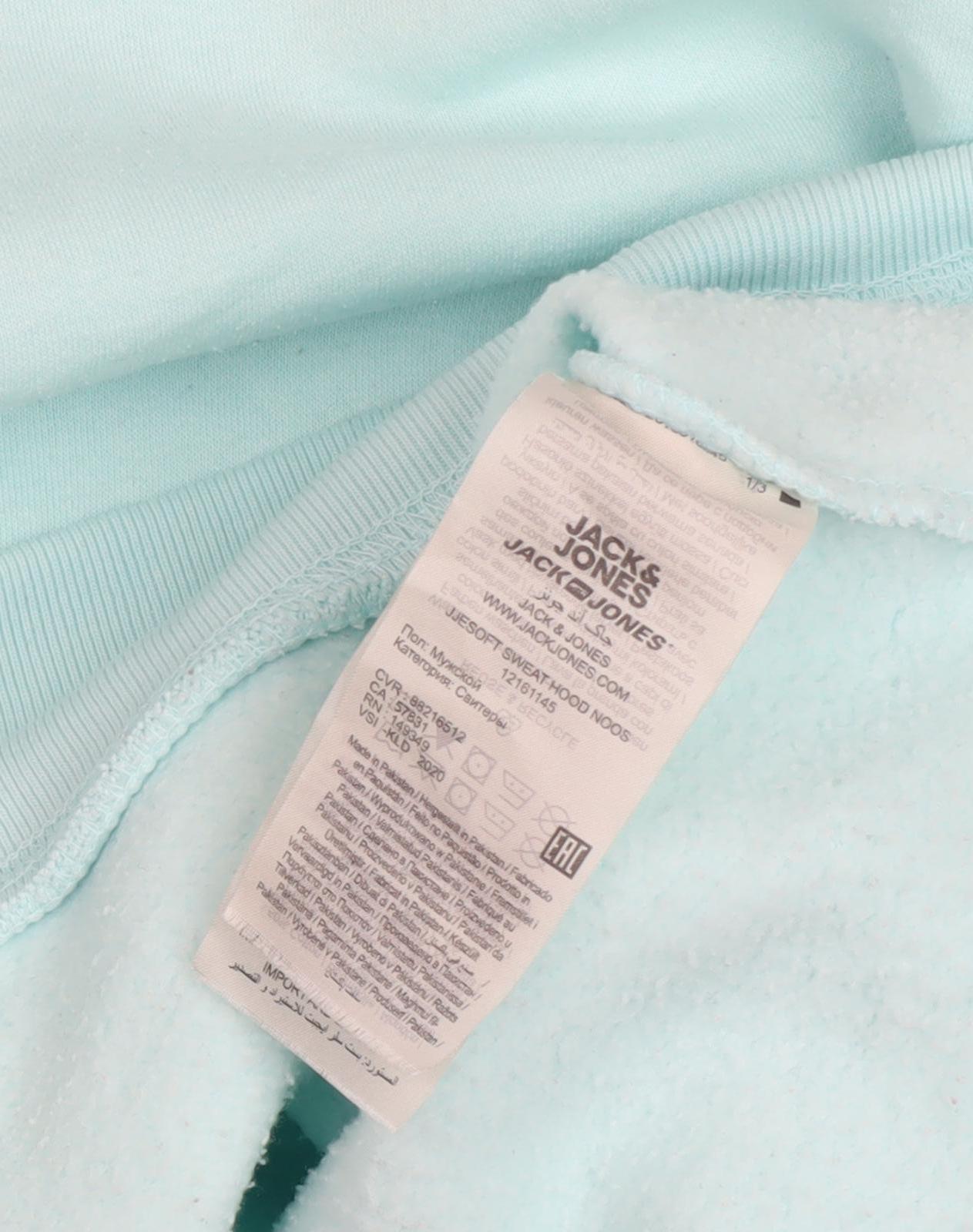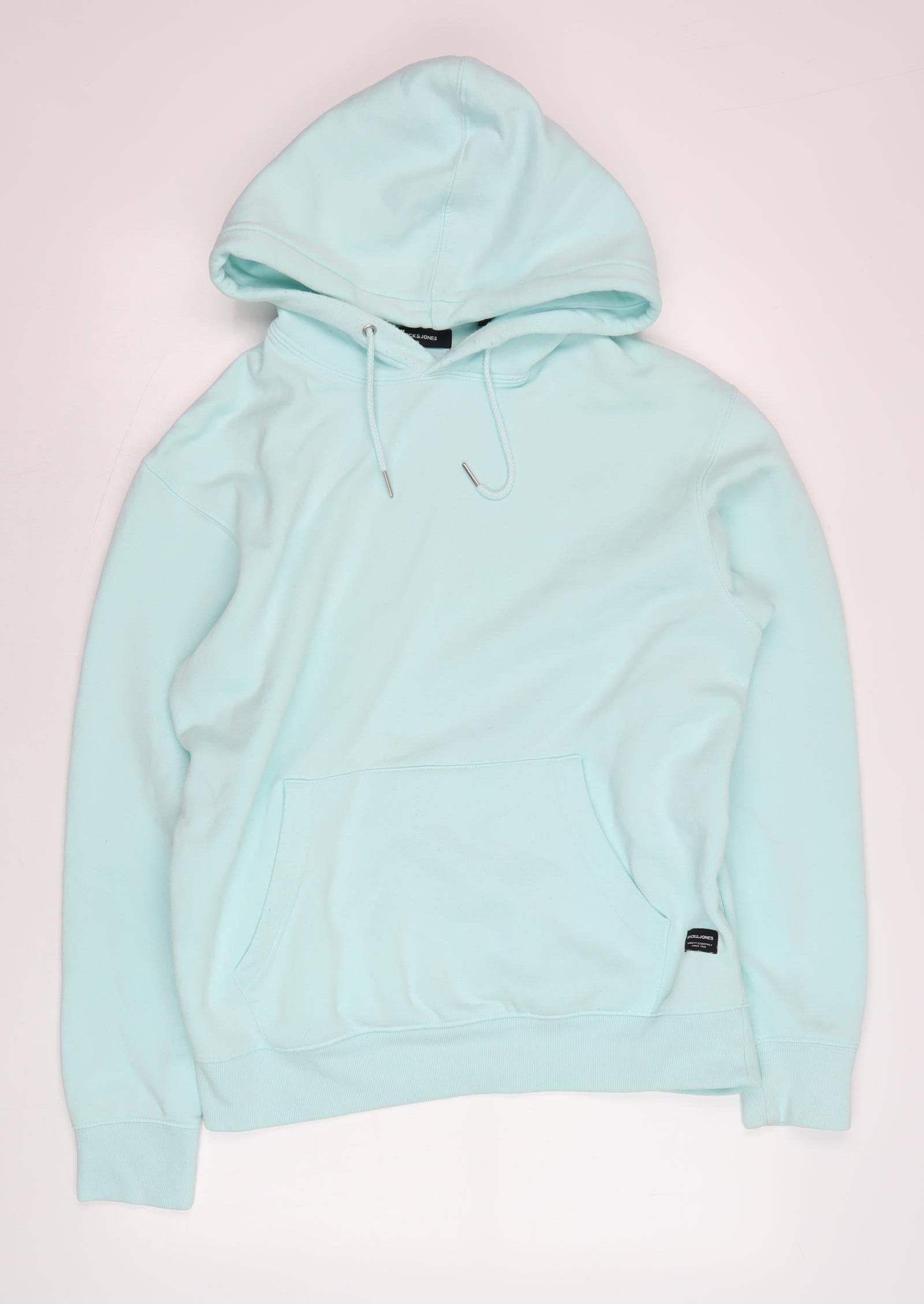 Experience the perfect blend of style and comfort with this men's pullover hoodie from JACK & JONES. Crafted in a refreshing light blue hue, this hoodie is a fantastic choice for those who appreciate a casual yet fashionable look. The hoodie is made from a fleece fabric, offering the ideal warmth and softness for those chilly autumn and winter days. It features a convenient drawstring closure, allowing for adjustable comfort and a style that's both functional and trendy. Its regular fit caters to the classic style, while the hooded neckline and long sleeves provide additional warmth. The hoodie includes practical pockets, perfect for storing small essentials or keeping your hands warm. With its versatile design, this hoodie pairs effortlessly with jeans or joggers, making it a staple piece in any wardrobe. Although it has a minor stain on the front, it's still in good condition, offering plenty of life for everyday wear. Machine washable for easy care, this hoodie promises to be a durable addition to your collection.