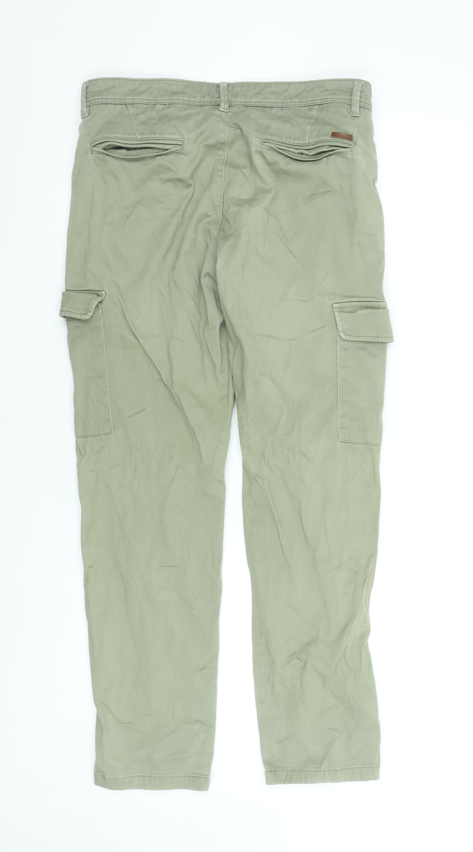 Jack & Jones Men's Green Cargo Trousers Size 33W 32L Slim Fit Cotton