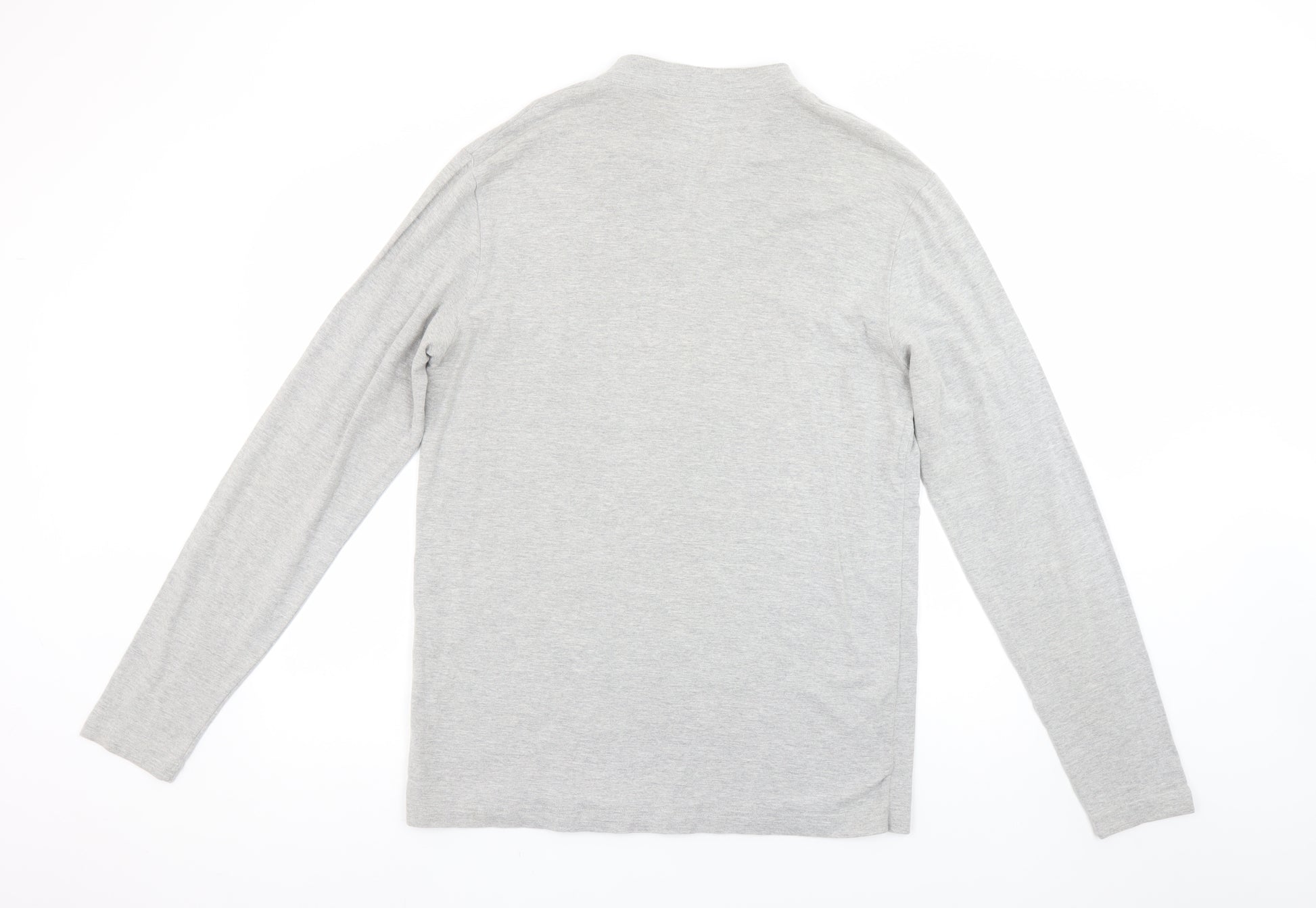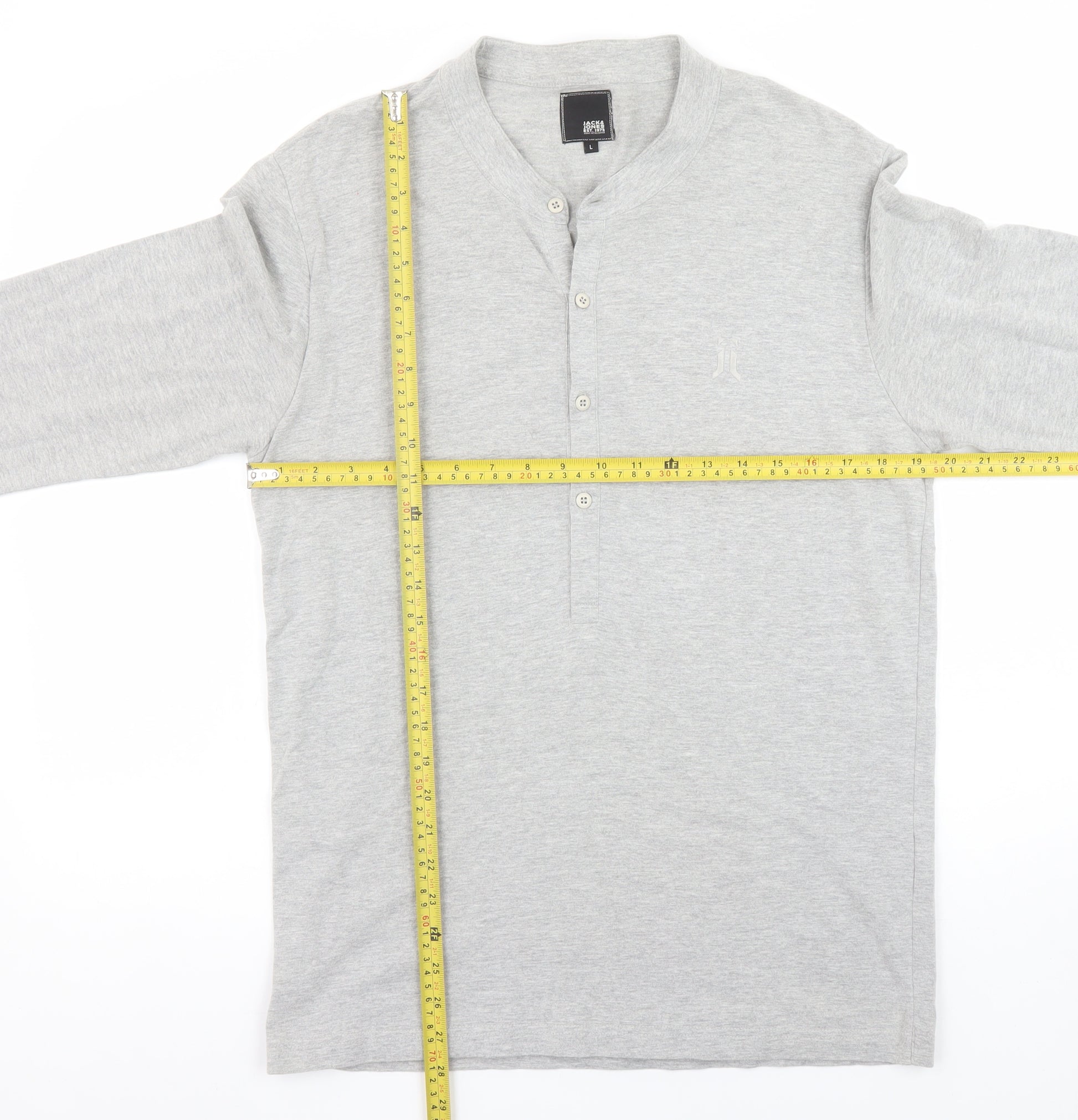 Jack & Jones Men's Grey Henley Long Sleeve T-Shirt Size L