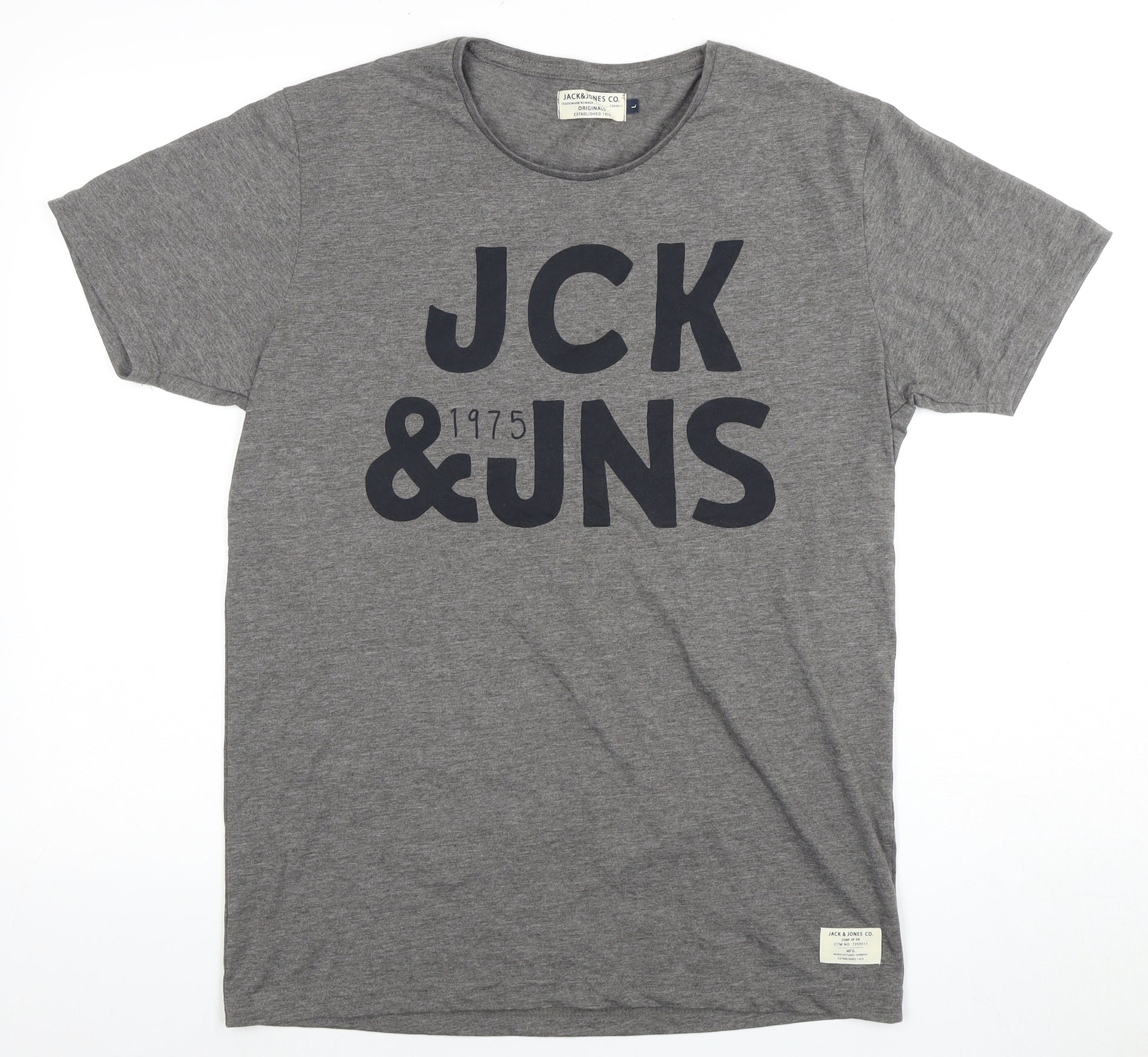 Jack & Jones Men's Grey Logo T-Shirt, Size L