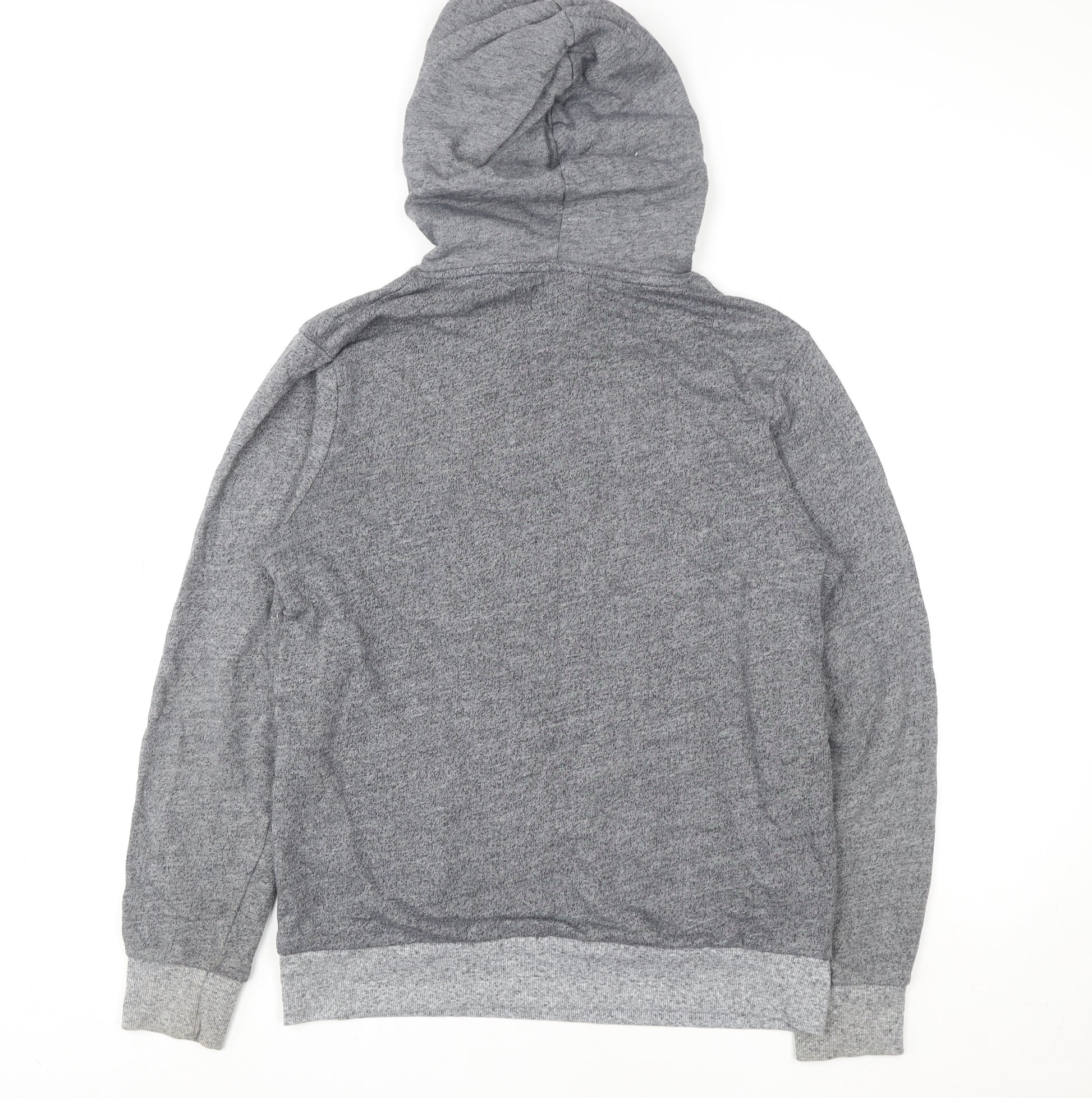 Jack & Jones Mens Grey Pullover Hoodie M Graphic Logo Hooded Sweatshirt