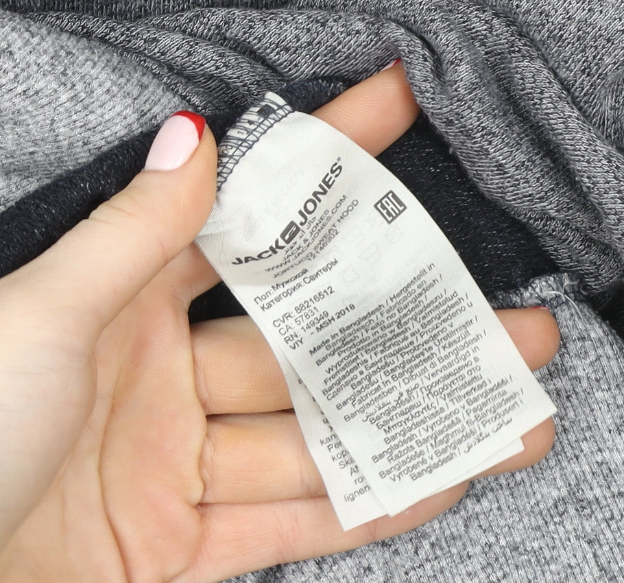 Complete your casual wardrobe with this stylish Jack & Jones Originals pullover hoodie. Crafted from a soft cotton and polyester blend, it offers exceptional comfort and durability, perfect for daily wear or relaxing weekends. The hoodie features a bold printed logo design across the chest with red and blue stripes, giving it a striking yet classic collegiate look that never goes out of style. Designed in a versatile grey tone, it pairs effortlessly with jeans or joggers for an easy laid-back outfit. This men’s grey hoodie comes in a regular fit and size medium, providing a comfortable shape without being too loose or fitted. The long sleeves and ribbed cuffs help keep warmth in, while the kangaroo front pocket adds both practicality and a classic streetwear aesthetic. The adjustable drawstring hood ensures a secure fit for cooler days, making it an excellent choice for autumn, winter, and spring seasons alike. Constructed with high-quality knit fabric combining 60% cotton and 40% polyester, this Jack & Jones hoodie maintains breathability and softness while offering durability for regular use. It’s machine washable for easy care, making it a practical and stylish everyday piece. Suitable for casual outings, walking, gym training, or lounging at home, this hoodie blends comfort with timeless appeal. Still in excellent used condition with only minimal signs of general wear, this hoodie retains its structure and colour beautifully, showing the reliable quality Jack & Jones is known for. A modern wardrobe staple, this pullover hoodie delivers a relaxed, confident look for any occasion. Whether layered under a jacket or worn on its own, it’s a versatile piece that adds effortless cool to your outfit. Pick up this Jack & Jones grey pullover hoodie today for a blend of quality, comfort, and style that’s ready for any casual setting.