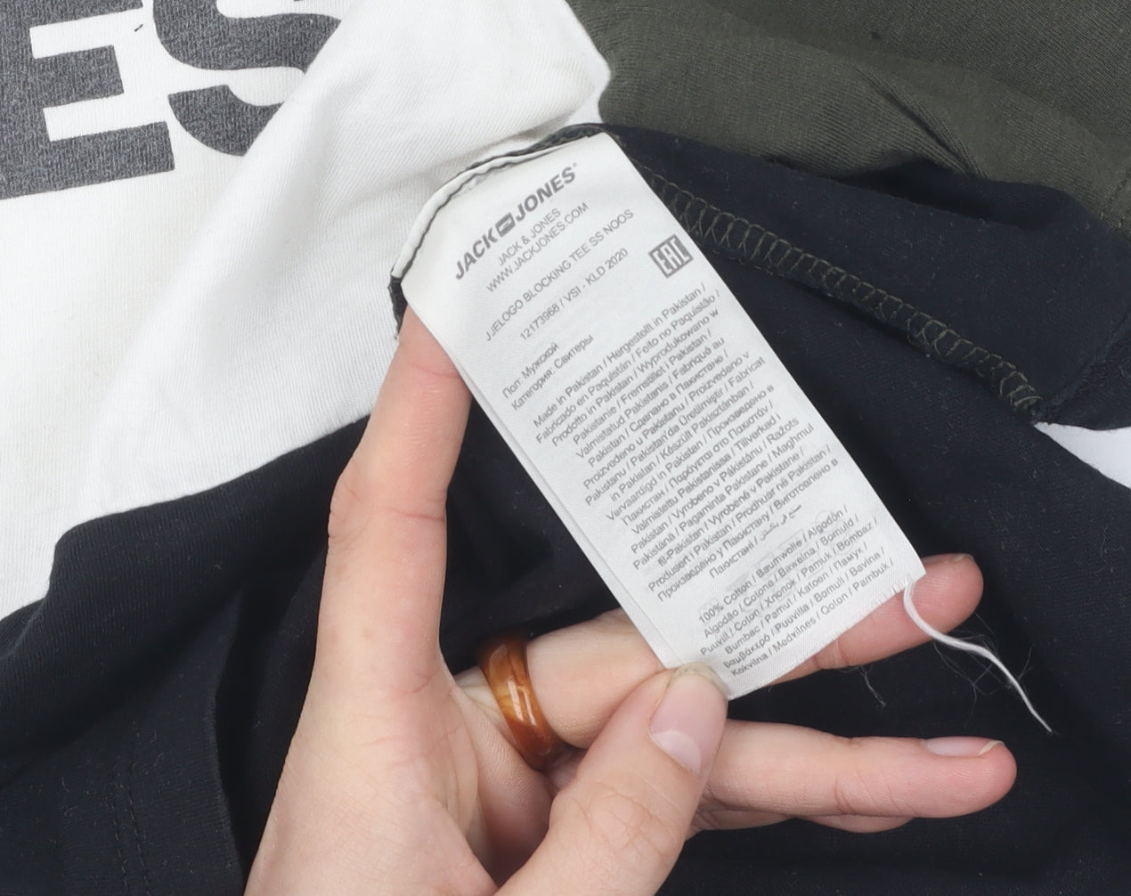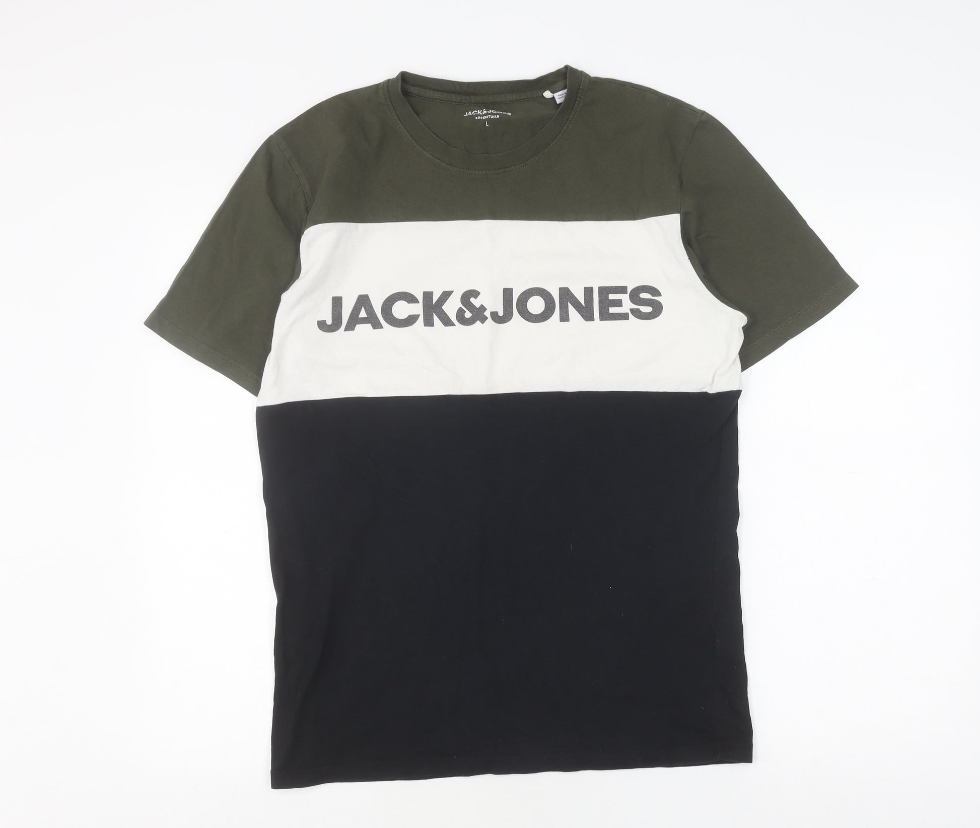 Jack & Jones Men's L Colourblock T-Shirt in Green, White, Black