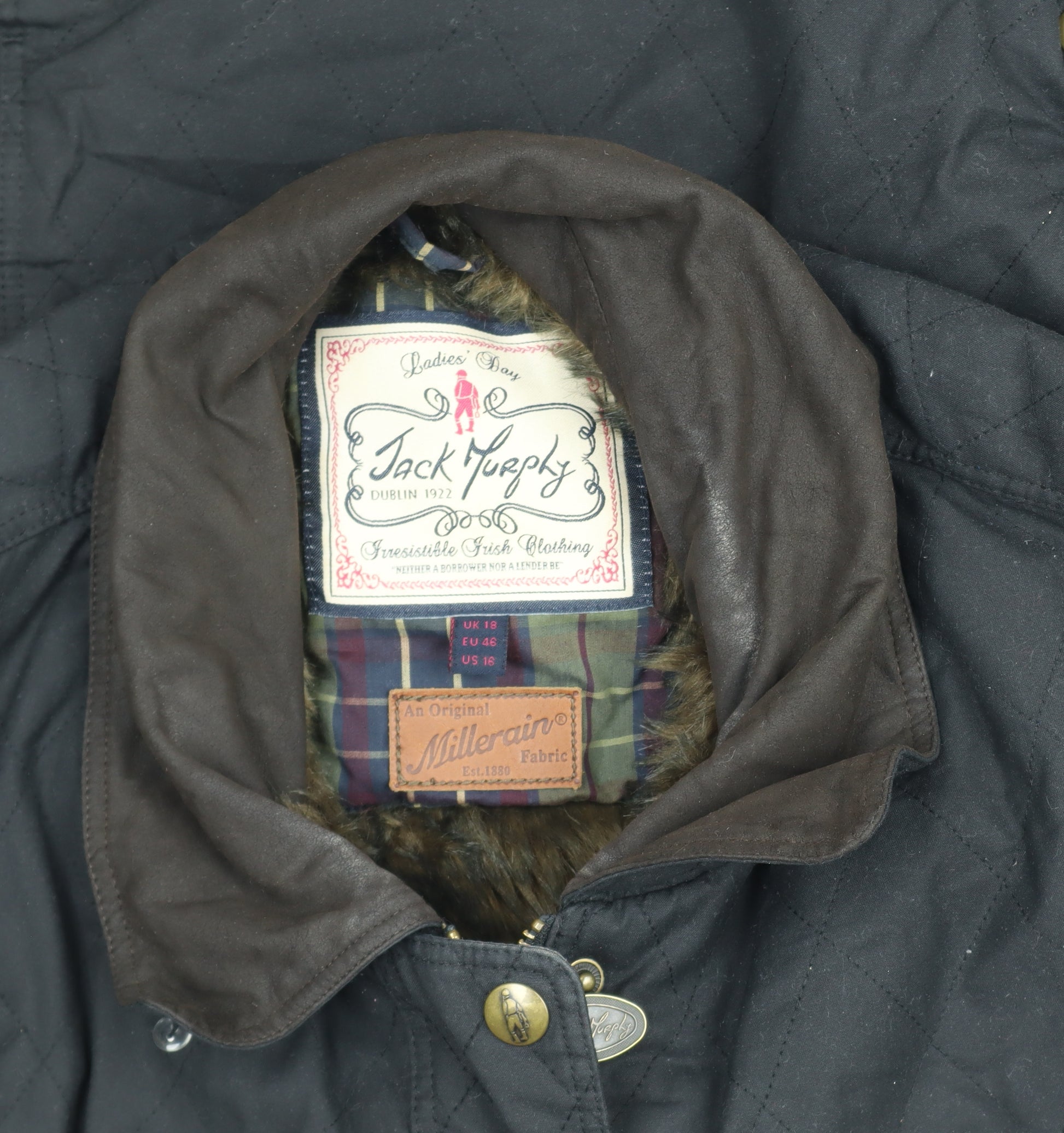 Jack Murphy Womens Black Quilted Waxed Cotton Mid-Length Jacket Size 16