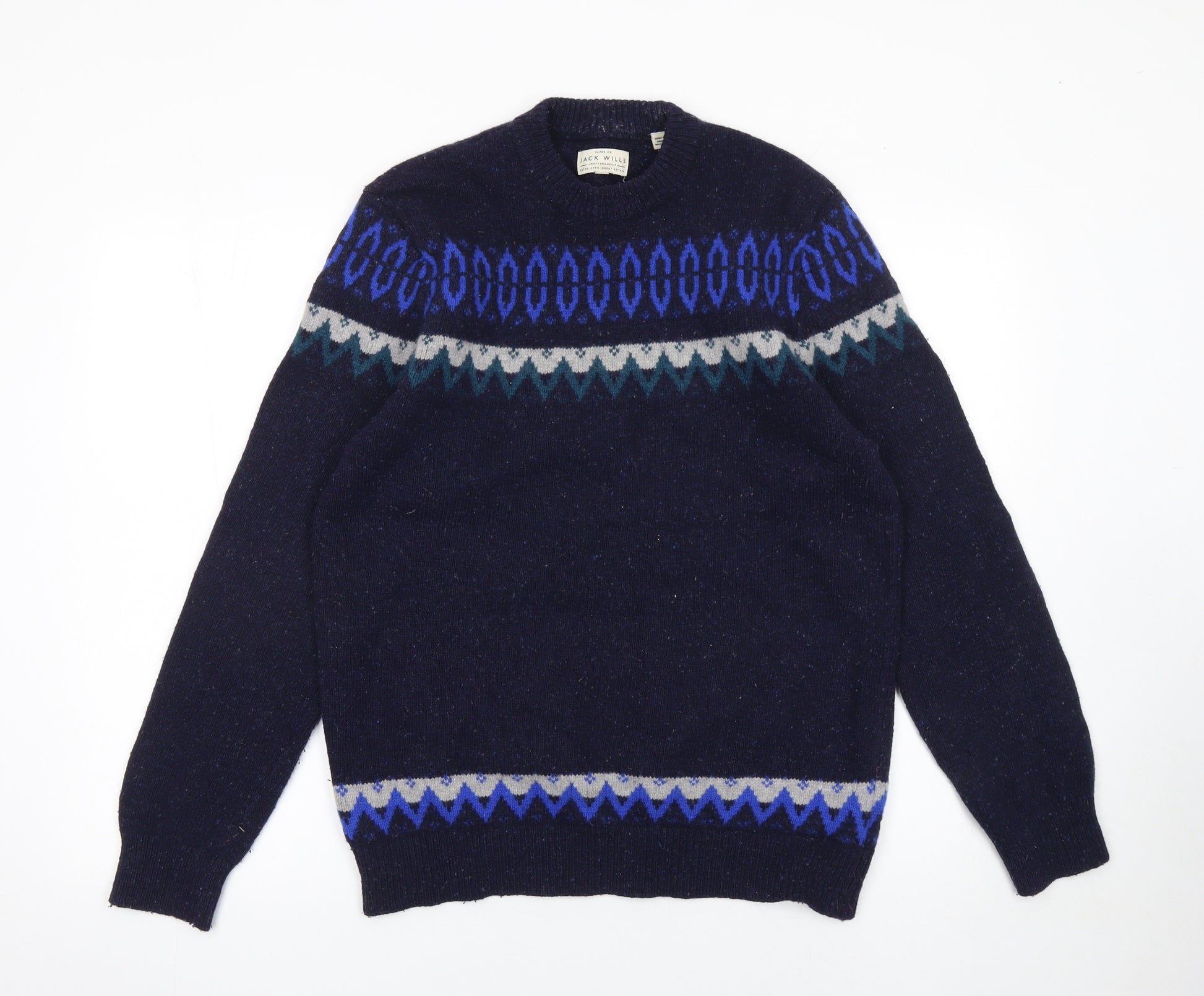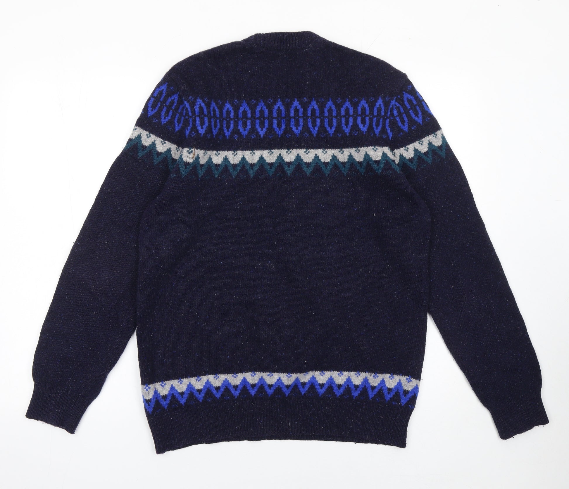 Men's Blue Fair Isle Wool Jumper M Crew Neck Knitwear