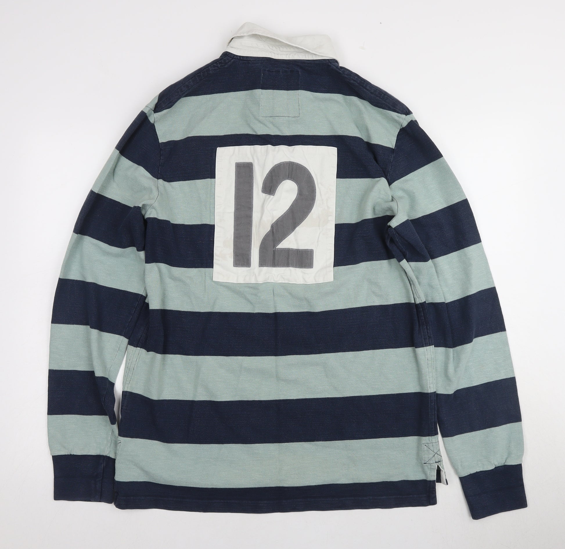 Regular price£24.75£2475Regular priceUnit price / perSale price £24.75 GBPGAP Mens Blue Striped Long Sleeve Cotton Rugby Polo Shirt L