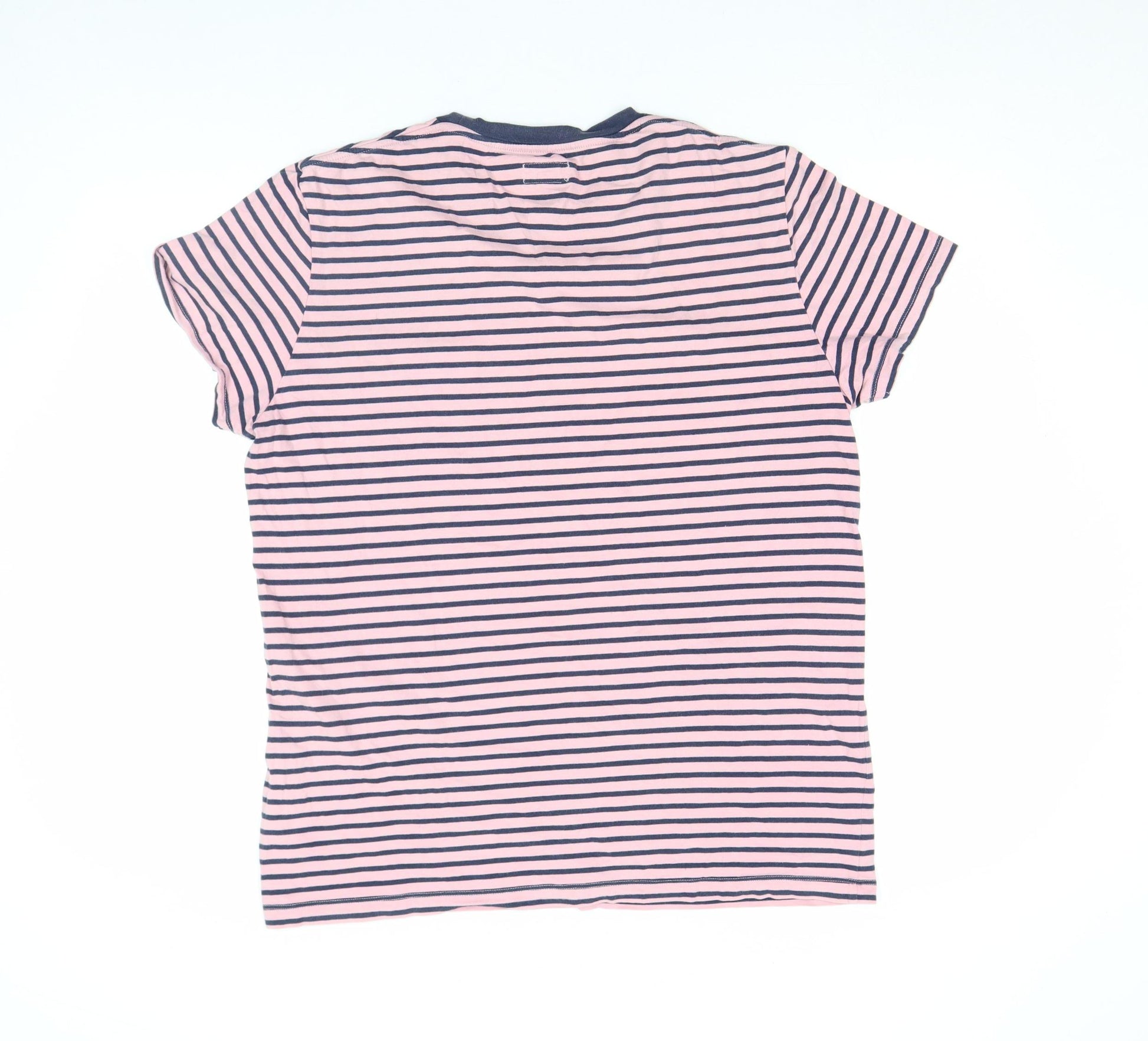 Men's Pink Navy Striped Cotton Crew Neck T-Shirt XL