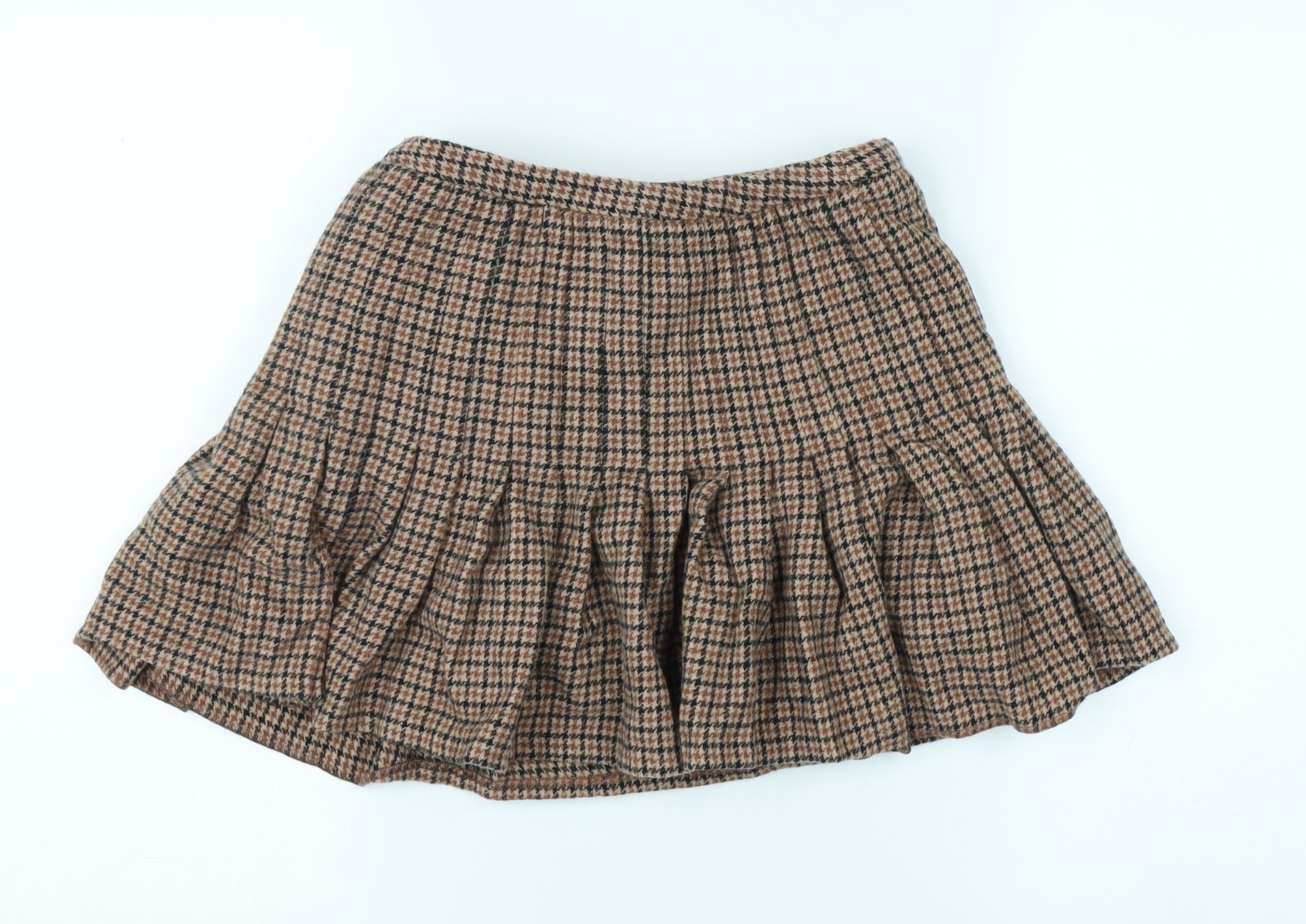 Embrace elegance with this Jack Wills women's pleated skirt, a perfect choice for fashion-forward individuals. Crafted in a refined brown check pattern, this skirt embodies the classic British style Jack Wills is famous for. The skirt is expertly tailored in a size 6, offering a fit that's both comfortable and flattering. Made predominantly from 70% wool and 30% viscose, it promises warmth and softness, while the wool blend adds durability and a slight stretch for ease of movement. Aesthetic buckles accentuate the skirt, lending a touch of sophistication and modern flair to the traditional pleated design. This versatile brown skirt can complement any wardrobe, fitting seamlessly into casual, work, or evening ensembles. Its regular fit ensures comfort and style, making it a must-have for any season. Although it does require dry cleaning, the high quality and exquisite craftsmanship justify the care it deserves. Ideal for a smart casual look or for a more formal occasion, this skirt promises to be a staple piece, offering a chic and polished finish to any outfit.