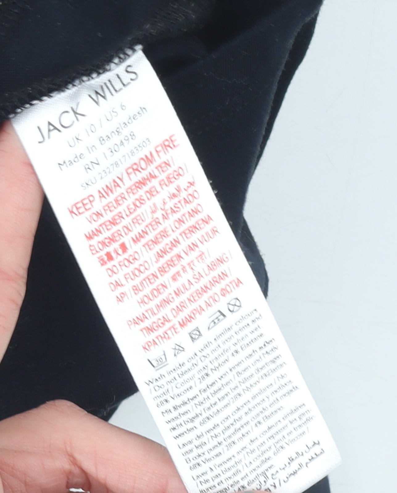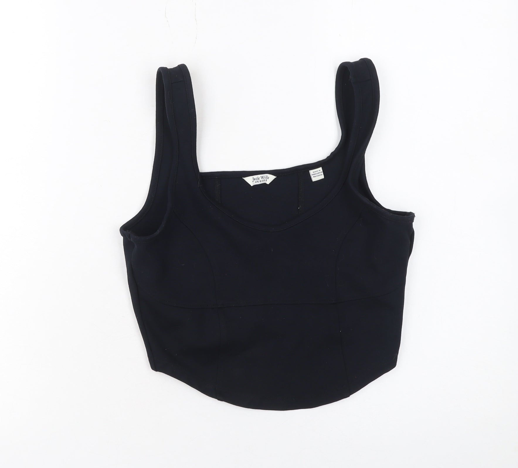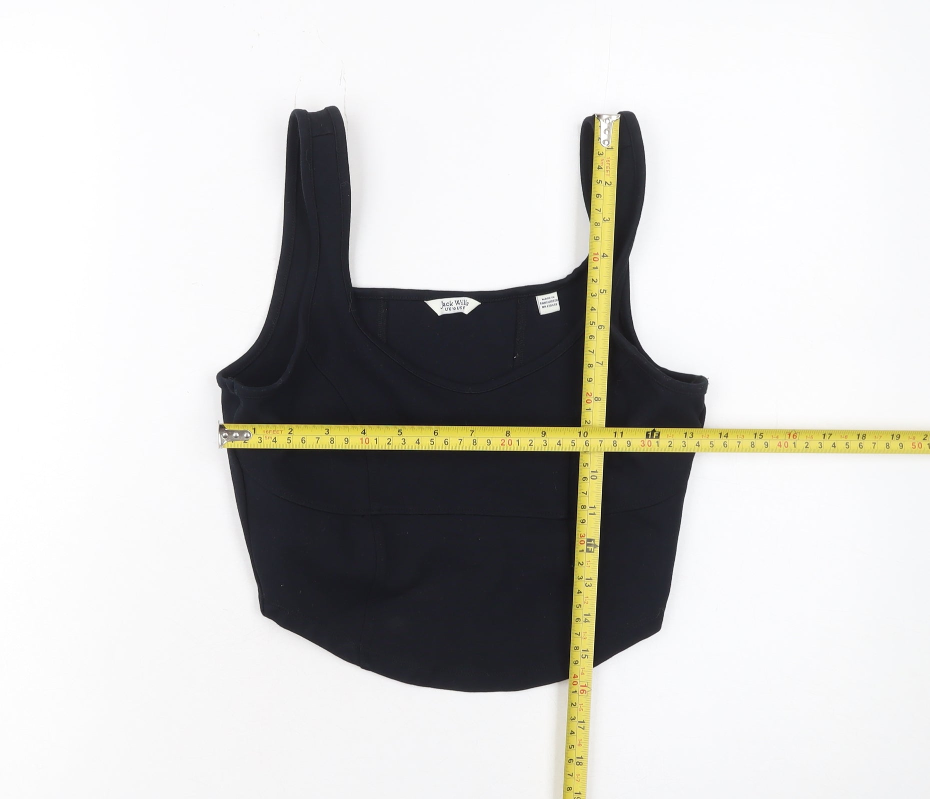 This stylish women’s black cropped tank top from Jack Wills is a staple piece for any wardrobe. Designed for a flattering slim fit, it features a comfortable stretch jersey fabric crafted from a blend of cotton, modal, and elastane. Its soft, breathable material ensures comfort and durability while maintaining a sleek, fitted silhouette. The square neckline and wide straps add a modern touch, ideal for layering or wearing alone in warmer weather. Perfect for casual days, relaxed outings, or as a base layer under jackets and shirts, this versatile piece blends simplicity with subtle sophistication. The cropped cut gives it a trendy edge, pairing effortlessly with high-waisted jeans, skirts, or shorts. Its solid black colour allows it to coordinate with almost any outfit, while the superior Jack Wills craftsmanship ensures long-lasting wear.Lightweight and breathable, this top is machine washable for easy care. The material composition — 68% cotton, 28% modal, and 4% elastane — guarantees softness, flexibility, and shape retention. Whether you’re dressing for a summer festival, a casual brunch, or just relaxing at home, this tank top is a comfortable and stylish choice that will elevate your wardrobe.With a condition rated as excellent and showing only light wear, it remains in great shape with no visible flaws. This Jack Wills cropped top combines laid-back British style with everyday practicality, offering both quality and charm. A must-have for anyone seeking a chic, versatile piece at an affordable price.