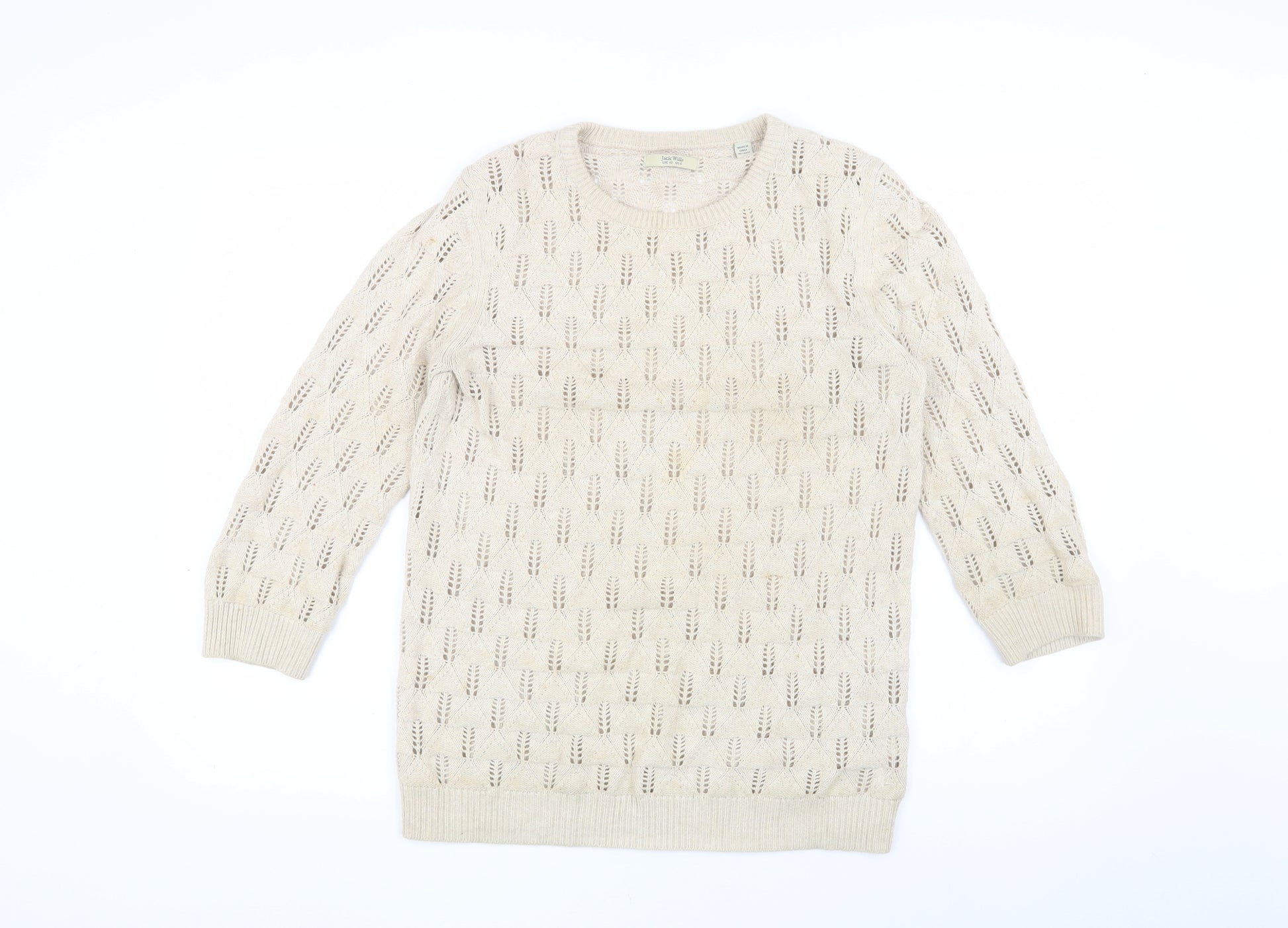 Step out in style with this versatile Jack Wills Women's Beige Cotton Pullover, Size 10, perfect for elevating your casual wardrobe essentials. Crafted from 100% cotton, this jumper promises comfort with a touch of effortless elegance, making it an ideal choice for both autumn and winter wear. The beige hue complements a variety of outfits, providing a chic and understated look that aligns seamlessly with any style. Featuring a crew neck design and a cosy 3/4 sleeve length, this pullover adds a dash of sophistication to your everyday ensemble while keeping you relaxed and at ease. The open-knit style gives it a unique texture that's both lightweight and breathable, perfect for layering or standalone wear. Whether you're stepping out for a day of errands or settling in for a casual evening with friends, this jumper's flexibility makes it a wardrobe staple. Opt for machine washable convenience, ensuring effortless garment care with every wear. Enjoy the regular fit that flatters any silhouette without compromising on comfort. Whether you're pairing it with jeans for a day out or layering it over a shirt for a more polished workwear look, this Jack Wills pullover suits a variety of occasions, from daily outings to laid-back gatherings. Its excellent condition bears minimal wear, assuring you style and quality that stands the test of time. Elevate your ensemble with this essential pullover, bringing together Jack Wills' signature blend of casual and refined aesthetics. Make it your go-to choice for a versatile, timeless addition to your winter wardrobe.