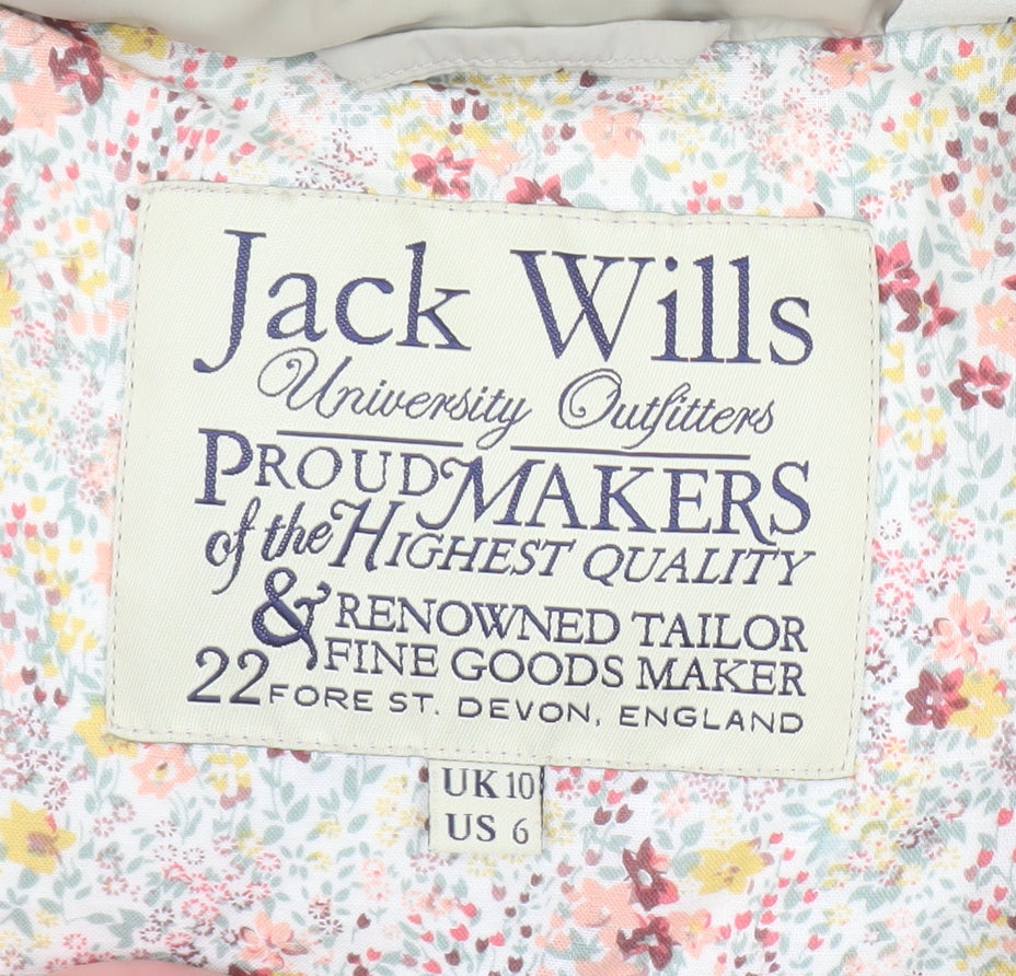 Stay stylish and comfortable with this Jack Wills women’s puffer gilet, perfect for layering on chilly days. Crafted from a durable polyamide and polyester shell, this sleeveless waistcoat offers a clean, modern look in a soft beige tone that complements any outfit. The subtle Jack Wills logo on the chest adds a signature touch of classic British style. Featuring a lightweight yet padded design, this vest provides enough warmth for cool autumn walks or winter errands without the bulk of a full coat. The soft floral cotton lining enhances comfort while adding a hidden touch of colour and character. The full zip fastening makes it easy to wear and layer over jumpers, hoodies, or long-sleeve tops. Designed in a regular fit for easy movement, the gilet has practical side pockets to keep hands warm or store essentials. Whether you’re heading for a casual day out or enjoying a countryside getaway, this Jack Wills waistcoat pairs beautifully with jeans, leggings, or knitwear for an effortlessly relaxed yet chic outfit. In excellent pre-owned condition with no visible flaws, it offers great value and timeless appeal. The neutral beige hue ensures versatility for day-to-day wear while the sporty padded silhouette keeps you warm and stylish. Ideal for casual, outdoor, or travel occasions, this cosy piece embodies the Jack Wills ‘University Outfitters’ aesthetic—blending comfort, quality craftsmanship, and understated British charm. A perfect must-have layer for any transitional season, offering functionality and fashion in one well-designed garment.