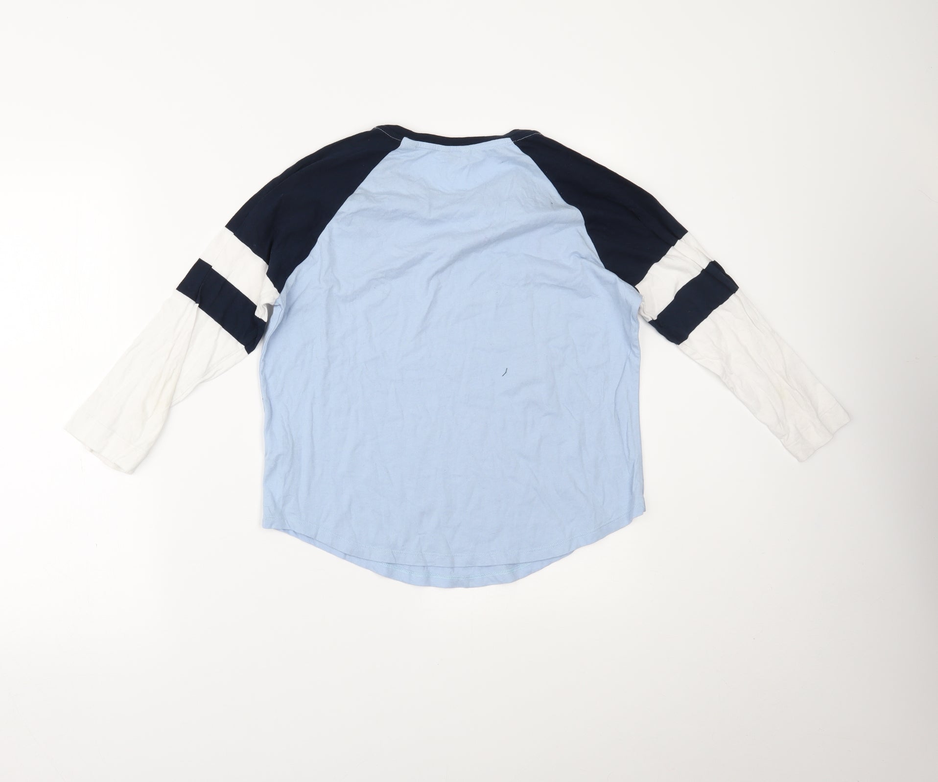 White Stuff Women’s Blue Long Sleeve Cotton Crew Neck T-Shirt UK 10