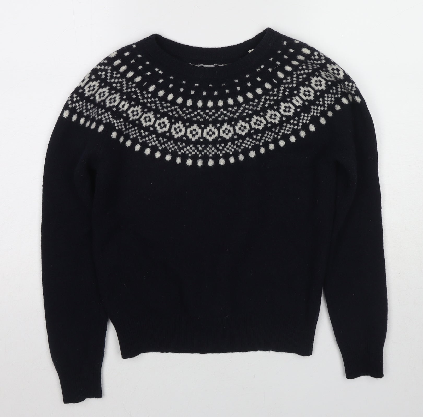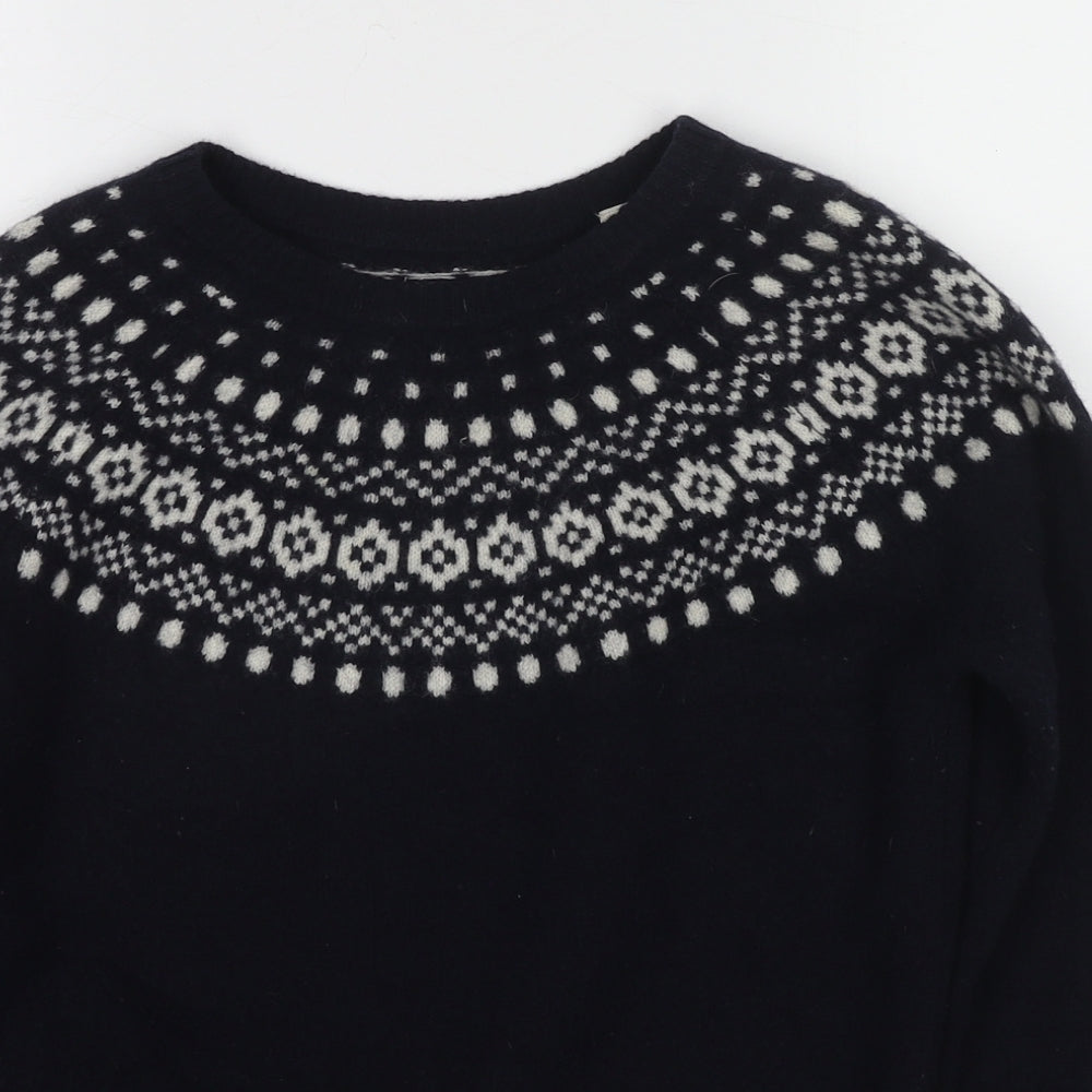 Womens Blue Round Neck Fair Isle Wool Pullover Jumper Size 12