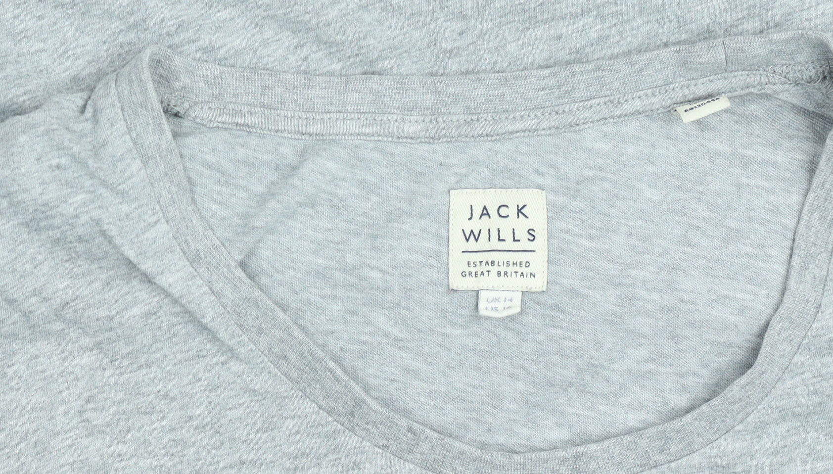 Add a touch of effortless British casual style to your wardrobe with this Jack Wills women’s grey T-shirt. Crafted from soft 100% cotton jersey, this lightweight and breathable top provides all-day comfort while maintaining a flattering fit. Designed with a classic crew neckline and short sleeves, this piece embodies timeless simplicity and is perfect for everyday wear. The front features the signature ‘WILLS’ print in subtle white lettering, giving it a clean yet recognisable branded look without overwhelming the minimalist design. This versatile T-shirt is ideal for layering under jackets or pairing with jeans, skirts or shorts for an easy, laid-back outfit. The grey colour offers a neutral base that complements any outfit, making it a wardrobe essential that transitions seamlessly between seasons. This Jack Wills tee reflects the brand’s heritage of quality and modern British fashion, balancing comfort with signature style. Machine washable for easy care, it’s as practical as it is stylish. Suitable for spring, summer or autumn wear, this top is perfect for casual outings, weekend wear, or relaxed occasions. In excellent pre-owned condition, showing light general wear but no visible flaws or marks. Whether you’re heading to the park, meeting friends, or simply relaxing at home, this grey Jack Wills cotton T-shirt brings understated style with dependable comfort. A staple piece that embodies the classic casual look Jack Wills is known for — perfect for women who value quality basics with a hint of sophistication. Available in a UK size 14, this tee offers a flattering regular fit that ensures ease of movement and a comfortable, natural feel. Elevate your casual wardrobe with this quality-made staple that blends softness, versatility, and authentic British character.