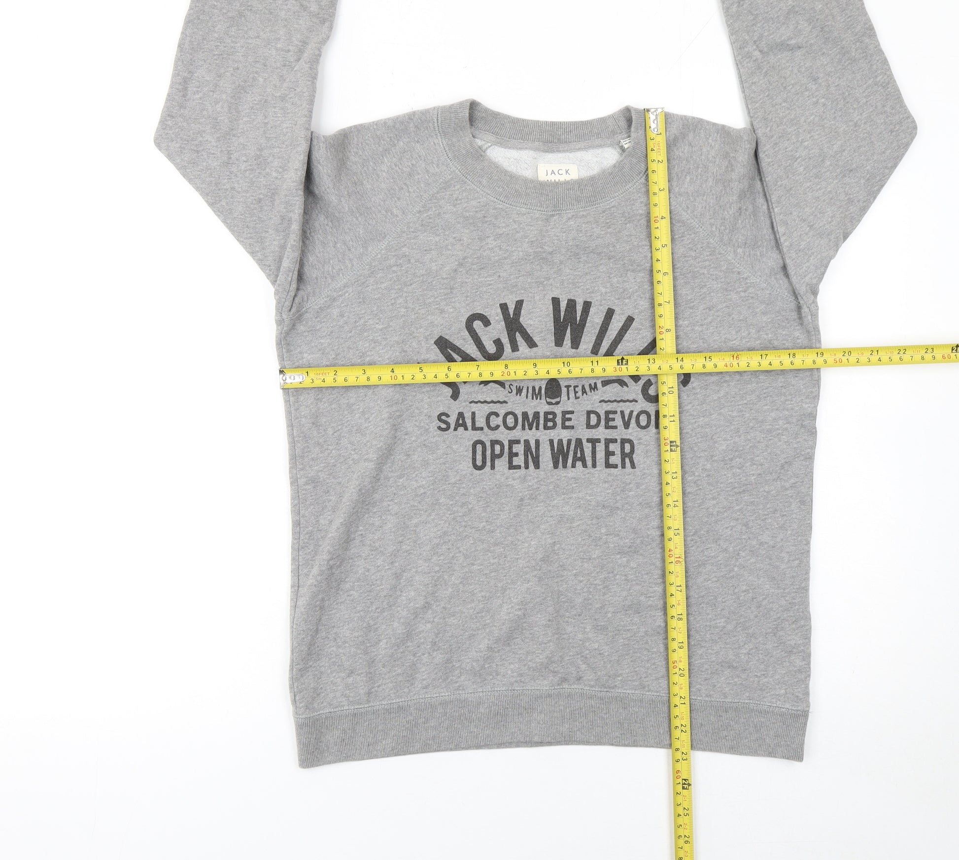 Stay effortlessly stylish and comfortable with this Jack Wills women’s sweatshirt in a versatile grey hue. Designed in a classic crew neck pullover style, this sweatshirt embodies British heritage with a contemporary casual edge. Crafted from a soft and durable blend of 76% cotton and 25% polyester, it offers the perfect balance of warmth, breathability, and easy care—ideal for all-season wear. The “Salcombe Devon Open Water” graphic print adds a bold collegiate and sporty charm, making this piece perfect for relaxed weekends, everyday casual looks, or layering on chilly days.The crew neckline and ribbed cuffs provide a snug, flattering fit, while the relaxed silhouette ensures easy layering over t-shirts or under jackets. Its medium-weight fleece interior provides cozy warmth without compromising on comfort, making it a go-to staple for transitional weather. The neutral grey tone complements a wide range of outfits—pair it with jeans and trainers for an effortless laid-back look or layered over activewear for casual outdoor activities.Ideal for women and teens seeking an authentic British casualwear aesthetic, this Jack Wills sweatshirt represents timeless quality and laid-back refinement. It’s versatile enough for everyday wear yet elevated with iconic branding that celebrates the coastal lifestyle the label is known for. The sweatshirt remains in excellent used condition with minimal signs of wear, ready to bring enduring style and comfort to your wardrobe. Perfect for anyone who loves cosy essentials that blend heritage with modern simplicity.