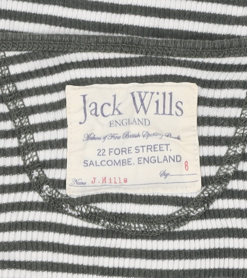 Add a touch of casual elegance to your wardrobe with this striking Jack Wills women's top. Crafted from 100% cotton, this soft jersey top promises comfort without compromising style. Featuring a timeless green and white striped pattern, the top is perfect for everyday wear while providing a classic aesthetic. Designed for women, this top is in a UK size 8, showcasing a regular fit for versatile styling. The long sleeves and crew neckline offer perfect seasonal transition wear, suitable for both autumn and spring days. Its pullover style ensures ease of wear, making it a staple piece in any casual ensemble. Pair it with jeans for a relaxed day out or layer it under a jacket for a more polished look. The top's raglan sleeves grant flexibility and movement, making it a fantastic option for travel. Machine washable, this garment requires minimal care, adding practicality to its list of features. Whether you're stepping out for a casual day or lounging in style, this Jack Wills top is an excellent choice.
