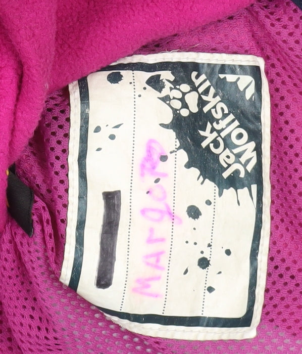 Keep your young adventurer warm and comfortable with this Jack Wolfskin girls’ hooded puffer jacket, perfect for chilly school days and weekend adventures alike. Crafted in a rich navy blue with a vibrant pink fleece lining, this jacket combines style, practicality, and durability for year-round protection. Made from 100% polyester, it boasts a water-resistant outer shell and a soft fleece inner layer that helps lock in warmth even in cooler outdoor conditions. Designed with functionality in mind, it includes a full front zip fastening for easy wear, two front pockets to keep small essentials secure, and elasticated cuffs that block out the wind. The hood provides added coverage during unpredictable weather, while reflective detailing enhances visibility and safety on darker evenings. With its sturdy build and reliable performance, this jacket is well suited for active girls who love spending time outdoors, whether hiking, walking to school, or playing outside in cold weather. The mid-length cut offers added warmth without restricting movement, making it versatile enough for both everyday wear and outdoor activities. The interior label features the brand’s distinctive jack paw logo, a hallmark of quality and adventure gear from Jack Wolfskin. Although this jacket has a few minor marks near the hemline and evidence of previous ownership, it remains in good used condition with plenty of wear left for its next owner. Ideal for casual or active occasions, this girls’ blue padded jacket brings dependable warmth, comfort, and timeless outdoor style. A smart choice for practical parents looking for affordable outdoor clothing that keeps up with an active lifestyle, this piece delivers excellent performance and value.