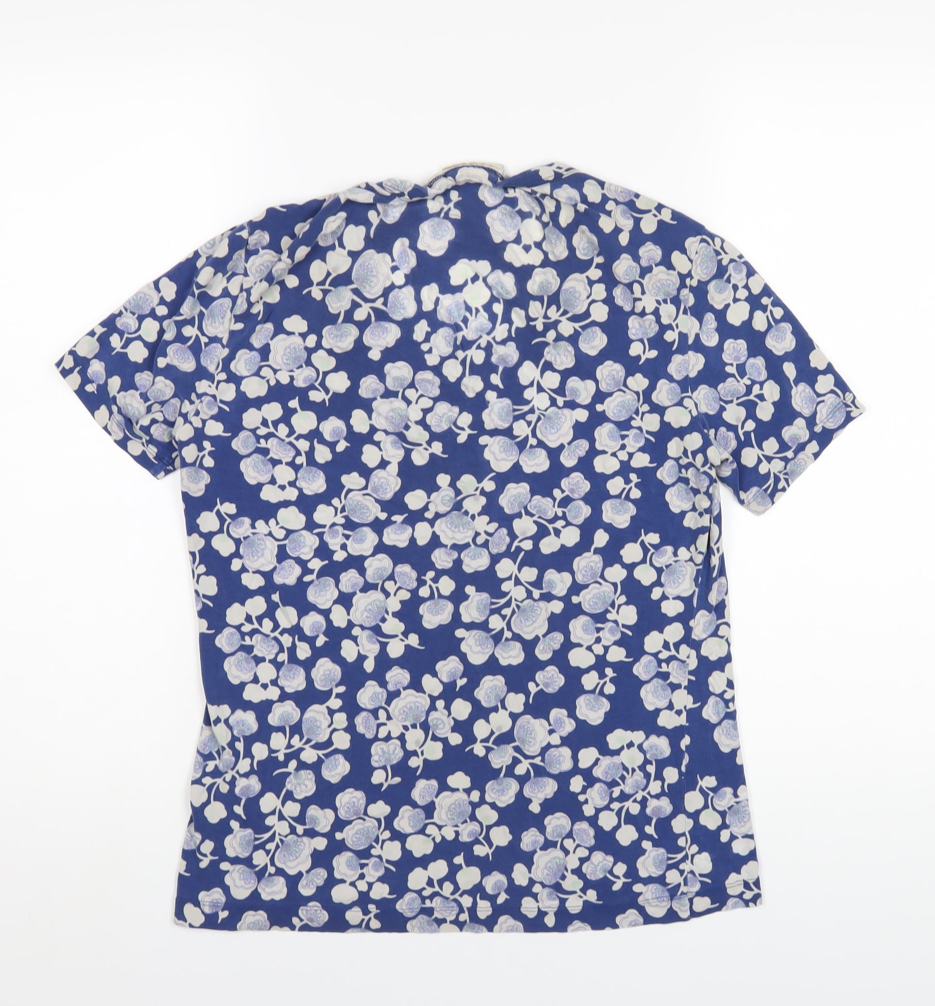 Womens Blue Geometric Viscose Basic T-Shirt Size L Round Neck