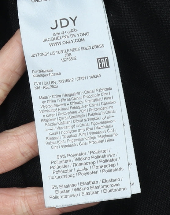 Discover the elegant simplicity of the Jacqueline de Yong Black Knit Dress. Perfectly tailored for women, this exquisite piece in size L offers a comfortable and flattering fit. Crafted from a blend of 95% polyester and 5% elastane, it ensures a soft touch while maintaining its shape, making it a versatile addition to your wardrobe. The high neckline and long sleeves create a sleek silhouette, ideal for cooler evenings or layering during transitional seasons. Its pullover design allows for easy wearing, and the classic black hue makes it a timeless choice for various occasions. Whether you're heading to a casual dinner or a business meeting, this dress provides subtle sophistication. The knit fabric enhances its relaxed yet refined style, effortlessly combining comfort and elegance. With minimal wear visible, it remains in excellent condition, offering you a chic staple at an accessible price. Step into understated style and experience the quality of Jacqueline de Yong. This dress is your go-to option for a range of events, providing a seamless blend of fashion and function.