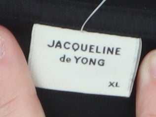 Step out in timeless sophistication with this striking black long coat by Jacqueline de Yong. Designed for the modern woman, this elegant overcoat offers a sleek, minimalist silhouette perfect for layering through autumn, winter, or cool spring days. Crafted from soft yet durable polyester twill, it delivers a flattering drape that pairs effortlessly with both casual and business ensembles. The coat’s classic open-front design allows freedom of movement and a relaxed fit that skims the body beautifully, maintaining a chic aesthetic without compromising on comfort. Its longline cut flatters all figures while providing just the right amount of warmth when the temperature drops. The tailored lapels add subtle structure, ideal for styling over blouses, knitwear, or dresses for both weekend outings and workwear polish. This versatile piece’s lightweight construction makes it a practical addition to any wardrobe, ideal for transitional weather and travel. The smooth inner lining enhances comfort, ensuring it slips on easily over other garments. With no pattern or unnecessary embellishment, this coat embodies understated elegance that transcends seasonal trends. Whether you’re heading into the office, out for dinner, or taking a weekend city stroll, it’s a dependable style companion. In excellent pre-loved condition with no marks, tears, or signs of heavy wear, it offers great value and refined wearability. Its classic black shade ensures maximum outfit versatility, making it easy to coordinate with any colour palette or style preference. Elevate your outerwear rotation with this polished Jacqueline de Yong coat and embrace effortless sophistication whatever the occasion.