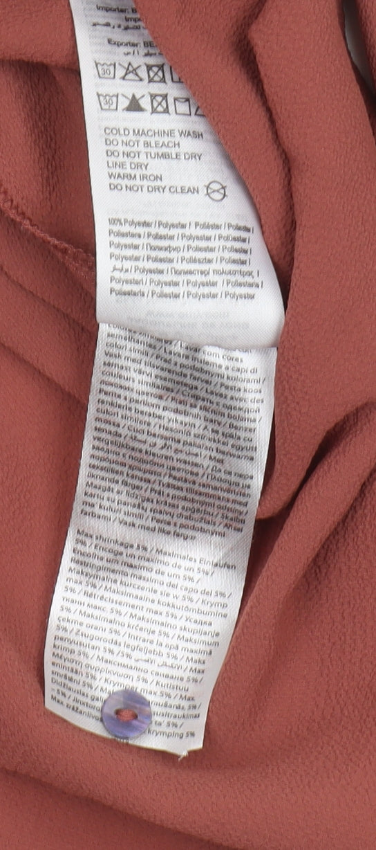 Elevate your wardrobe with this sophisticated Jacqueline de Yong blouse, crafted for women who appreciate style and comfort. This classic piece comes in a rich brown hue, perfect for a versatile look. It features a casual yet elegant design, making it suitable for various occasions, from casual outings to business casual settings. The blouse is designed with long sleeves and a collared neckline, adding a touch of structure to its relaxed silhouette.Made from 100% polyester, this blouse ensures a lightweight and comfortable fit, ideal for all seasons. The button accents enhance its appeal, offering a classic touch that complements its solid pattern. This regular-fit blouse is available in size 14, perfectly tailored to provide a flattering look for any body type. The garment is machine washable, promising easy care and maintenance.Despite being pre-loved, the blouse remains in excellent condition, showing no signs of wear or damage, making it a valuable addition to any wardrobe. Its plain yet elegant design allows for effortless pairing with various bottoms, from jeans to skirts, making it a versatile staple.This Jacqueline de Yong blouse is a must-have for anyone seeking to add a timeless piece to their collection. Whether you're dressing up for an event or dressing down for a day out, this brown blouse will serve as a perfect partner in style. Don't miss the opportunity to own this chic and practical piece at a great value.