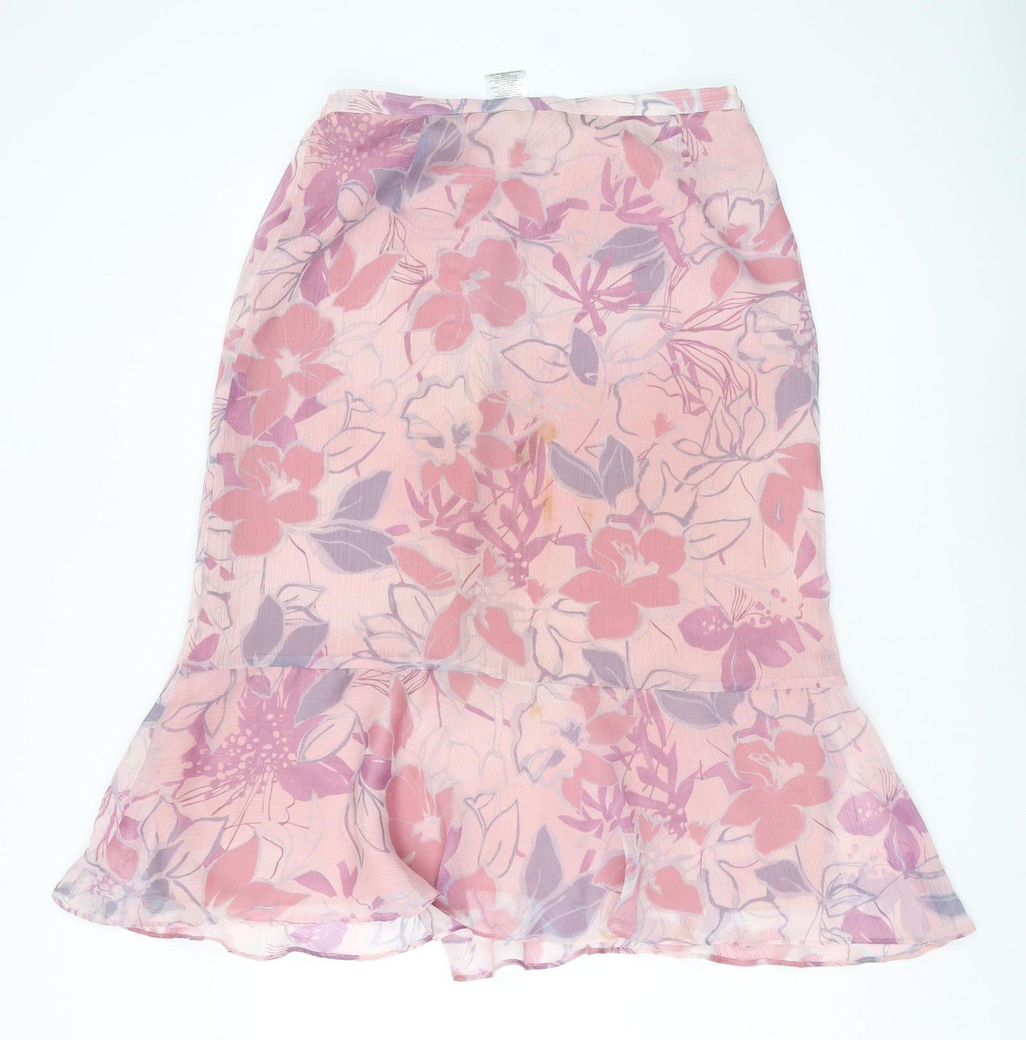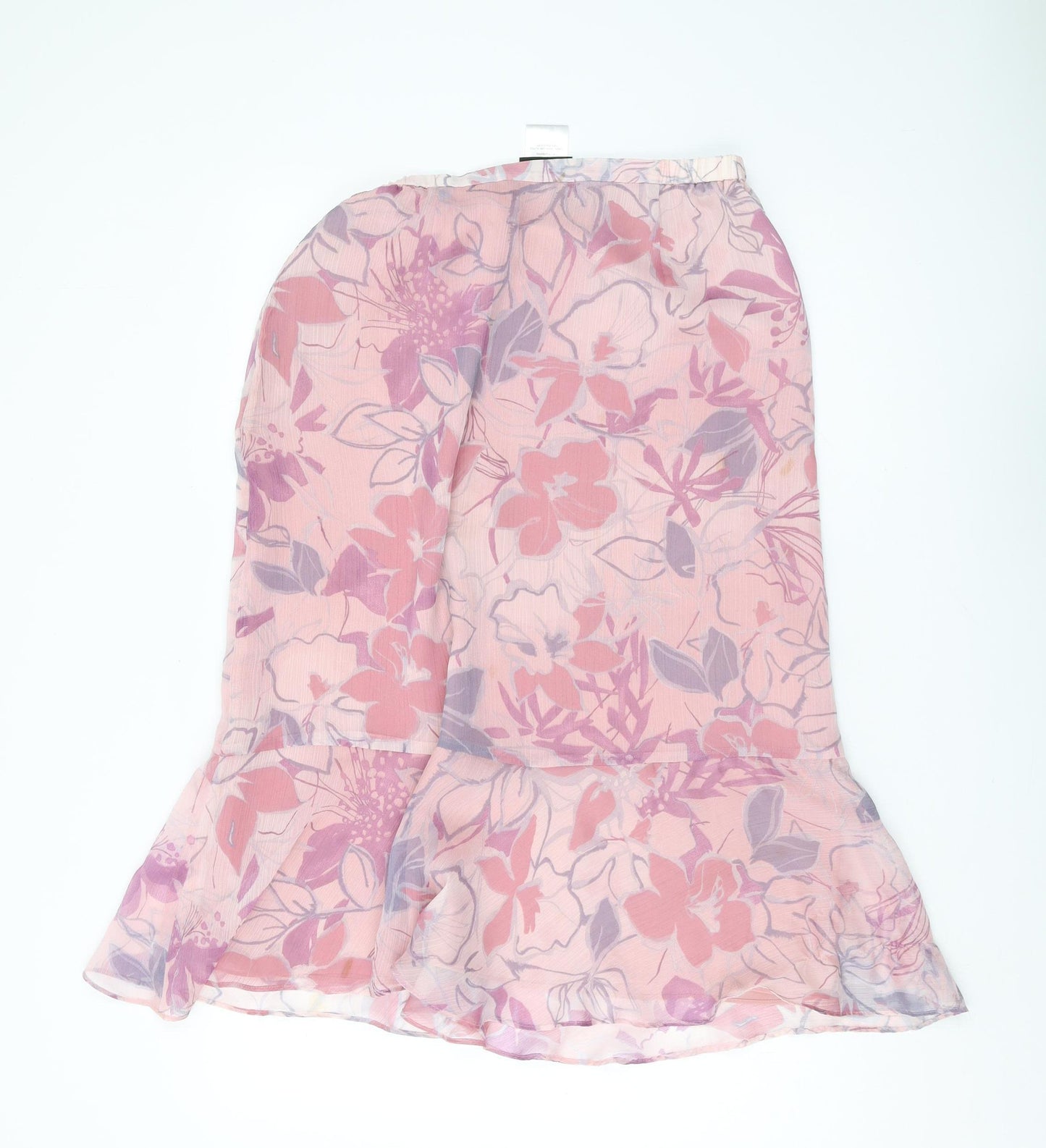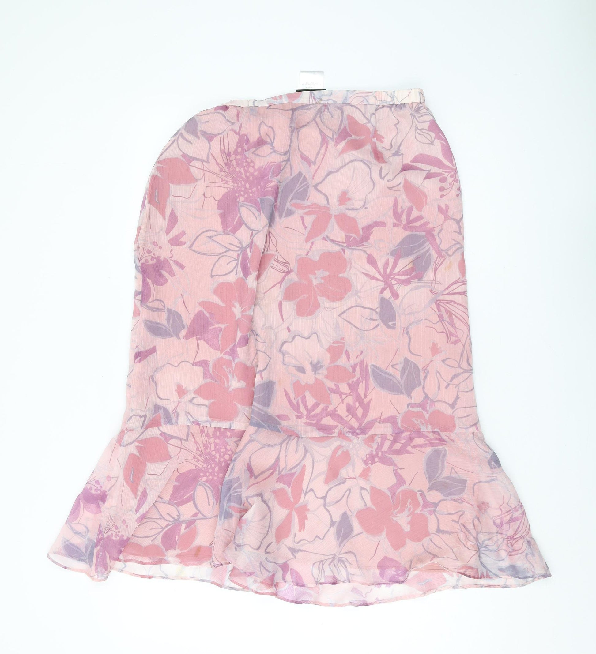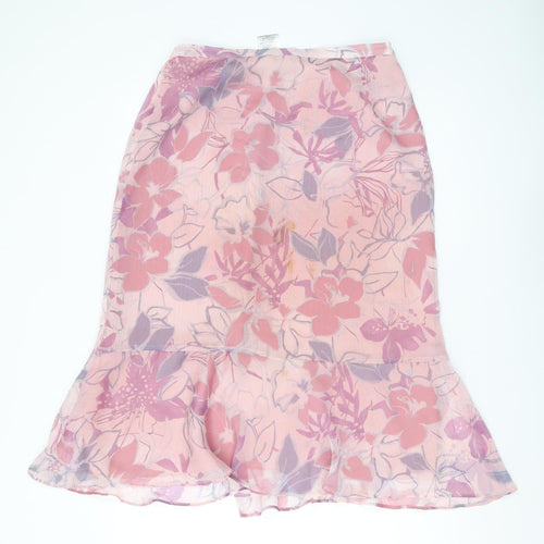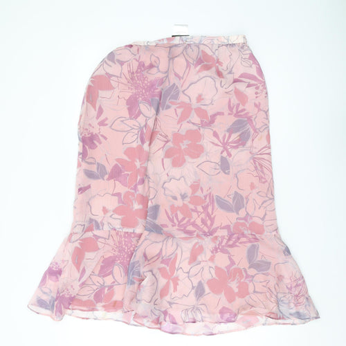 Embrace elegance with this Jacques Vert floral midi skirt, perfect for adding a touch of femininity to your wardrobe. Rendered in a lovely pink hue, the floral pattern adds charm and sophistication to your style. Made from lightweight chiffon, this skirt promises comfort on warm days while the elastic waist ensures a tailored fit. The trumpet silhouette gracefully enhances your form, making it an ideal choice for casual outings or semi-formal gatherings. It's machine washable, allowing for easy care. Make this versatile skirt your favourite piece for spring and summer outings.