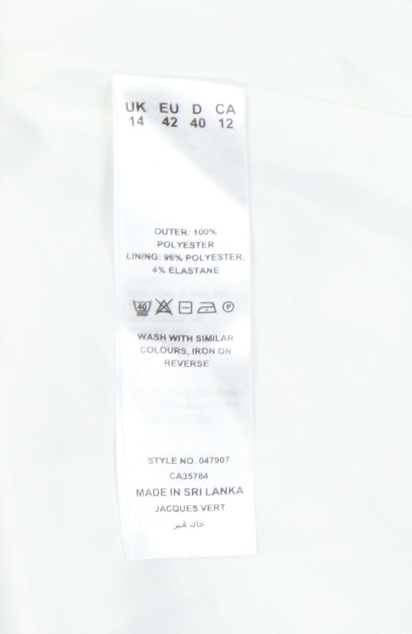Add a touch of elegance to your wardrobe with this stunning Jacques Vert women's blouse. Crafted from lightweight chiffon-style polyester, it features a beautifully romantic floral print in soft pink, lilac, and burgundy tones on a clean white base. The flattering wrap-style front is adorned with delicate ruffle accents, adding feminine charm and effortless sophistication to the design. Perfect for spring and summer occasions, its short flutter sleeves create an airy feel, offering comfort without compromising style. The blouse is fully lined for a smooth and comfortable fit, while the concealed back zip closure ensures a sleek silhouette. Designed in a size UK 14 with a regular fit, it drapes gracefully on the body, making it ideal for weddings, garden parties, or cocktail events. The deep V-neckline enhances the neckline, making it perfect to complement with delicate jewellery, while the floral pattern exudes timeless charm. This versatile piece can easily be paired with tailored trousers, a pencil skirt, or even smart jeans for a mix of casual elegance. With its blend of refined detailing and high-quality craftsmanship from Jacques Vert, this blouse is a wardrobe favourite for those seeking sophisticated style. Whether attending a daytime celebration or an evening gathering, this floral wrap blouse will ensure you look effortlessly glamourous. Machine washable for easy care, it is a blend of quality, design, and wearability, ensuring it remains a cherished go-to piece for many occasions.