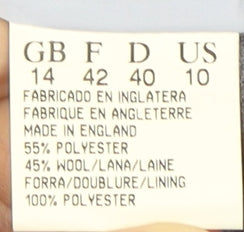 Elevate your wardrobe with this elegant Jacques Vert blue blazer jacket, perfect for both business and formal occasions. Designed for women, this jacket features a sleek and sophisticated style that will complement any outfit. The mid-length cut provides a flattering silhouette, while the long sleeves ensure comfort and warmth. Crafted in England, this jacket is made from a luxurious blend of 55% polyester and 45% wool, offering a soft and durable finish. The inner lining is 100% polyester, adding an extra layer of comfort. The jacket features a classic button closure, allowing for a neat and polished appearance. Its timeless design is free of any patterns, ensuring it remains versatile and stylish for years to come. Whether you're attending a meeting or a formal event, this jacket will add a touch of class to your look. Despite being pre-owned, this blazer is in excellent condition, with only light wear evident. There are no significant flaws, making it a reliable addition to your wardrobe. Priced competitively, this jacket is a must-have for those seeking elegance and quality in their attire. Don't miss out on this opportunity to own a classic piece from Jacques Vert, a brand renowned for its attention to detail and superior craftsmanship.