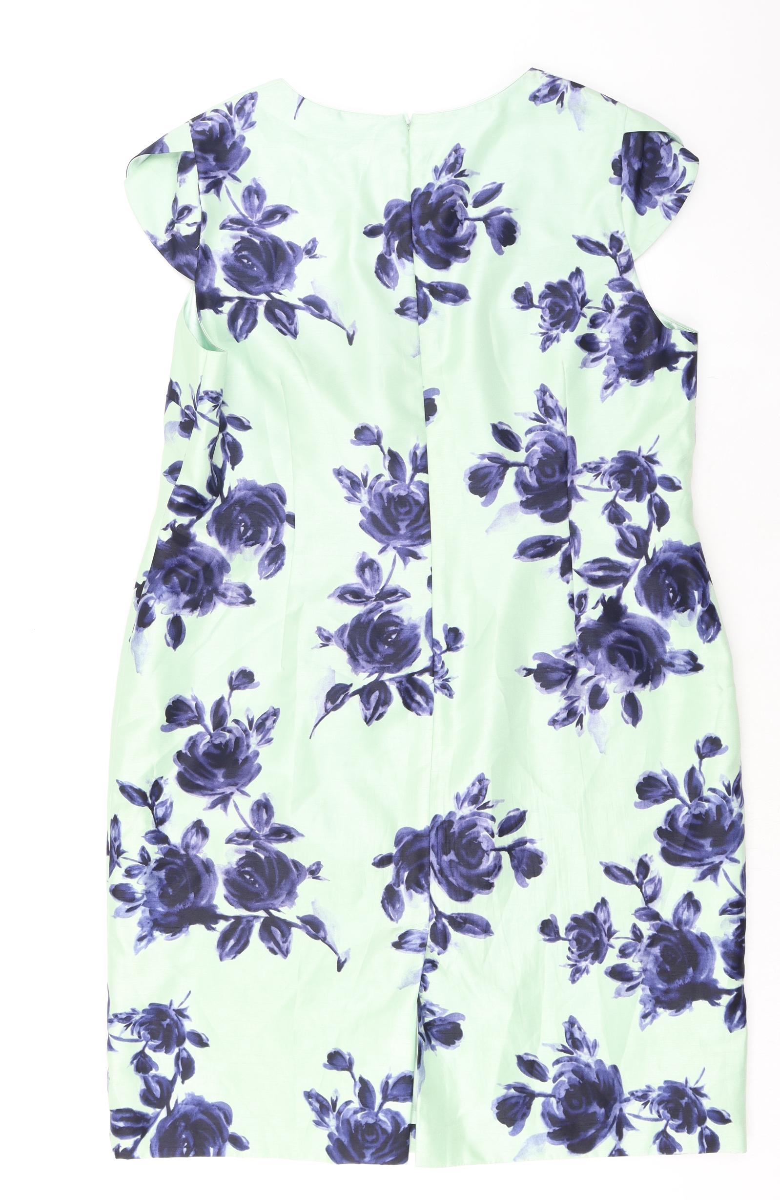 Womens Green Floral Polyester A-Line Size 20 Scoop Neck Zip