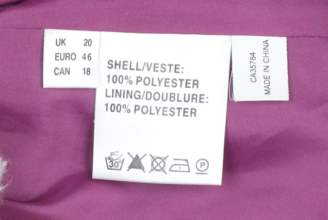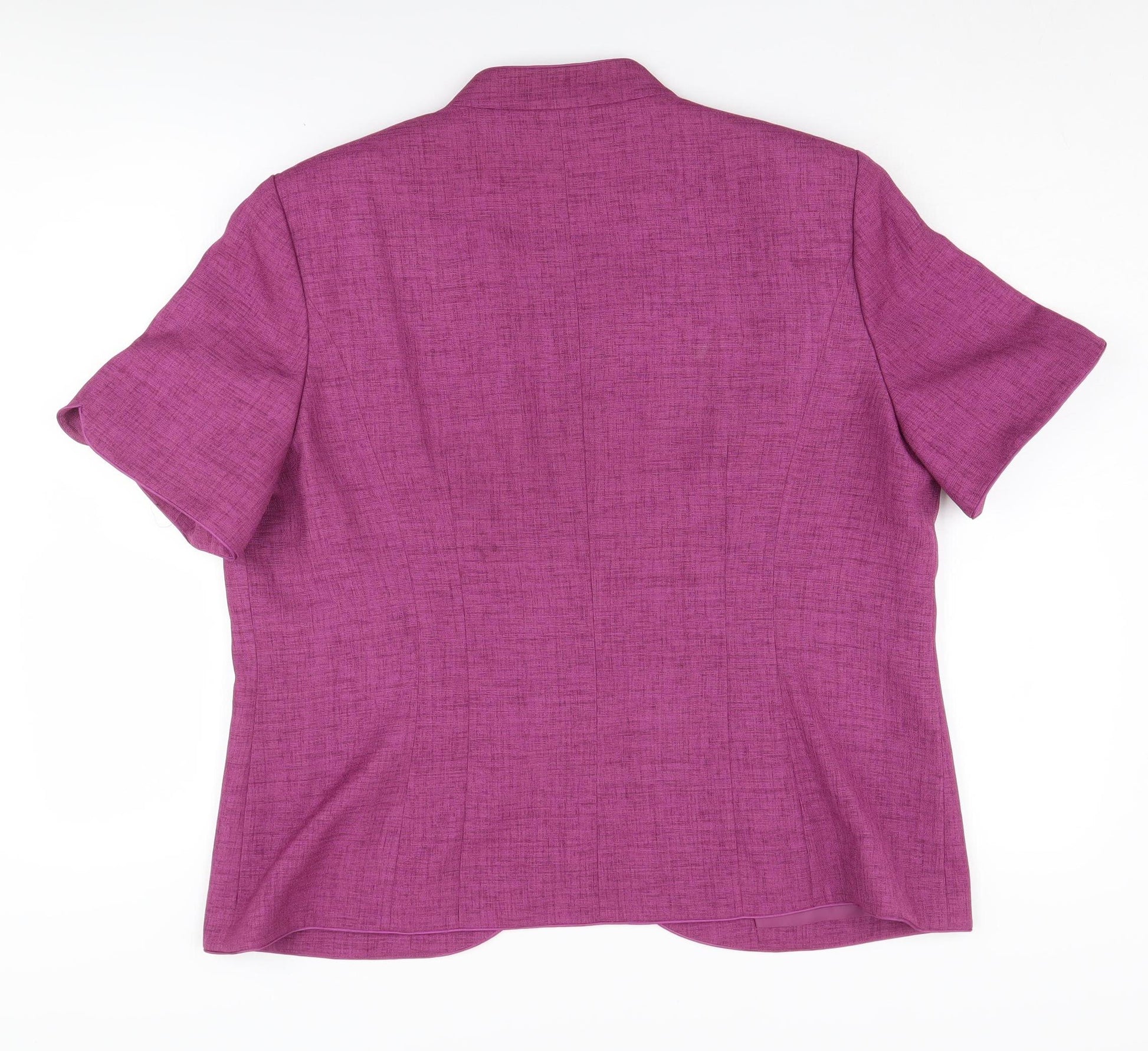 Step into elegance with this Jacques Vert Women's Blazer in a vibrant purple hue. Perfect for formal occasions or adding a sophisticated touch to any ensemble, this suit jacket is crafted for the modern woman. The regular-length blazer features short sleeves and a classic one-button front closure, making it an ideal choice for those looking to blend style with comfort. Made entirely from polyester, the woven fabric ensures durability while the polyester lining adds a layer of comfort and finesse. Designed to fit a UK size 20, this blazer maintains a classic fit, accentuating your silhouette perfectly without compromising on comfort. The lined interior ensures a smooth drape, making it a versatile addition to any wardrobe. Whether you're attending a formal event or just dressing up for a sophisticated day out, this blazer has you covered. Its machine-washable nature adds to the ease of maintenance, allowing you to keep it looking fresh with minimal effort. Elevate your wardrobe with this stylish piece from Jacques Vert, capturing the essence of elegance and simplicity. Don't miss out on adding this timeless piece to your collection at an affordable price. Ideal for autumn and spring seasons, pair this versatile blazer with tailored trousers or a pencil skirt for a polished look.