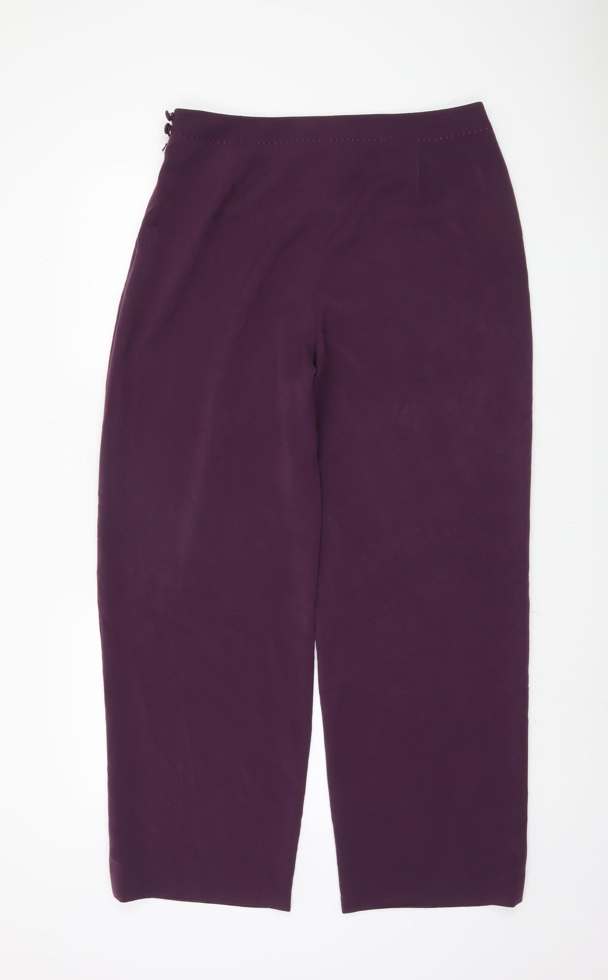 Discover elegance with these Jacques Vert purple trousers, tailored for women who appreciate style and comfort. Made from 100% polyester, these trousers are designed for a smooth fit that remains comfortable throughout the day. The flat front style offers a modern, sophisticated look, ideal for both business and casual settings. In size 16, these trousers provide a regular fit, perfect for everyday wear or special occasions. The rich purple colour adds a touch of vibrancy to your wardrobe, ensuring you stand out with subtle class. Machine washable, these trousers are easy to maintain, saving you time and effort. Their excellent condition with no visible wear ensures you receive a quality piece at an affordable price. Ideal for the fashion-forward woman, these versatile trousers are a must-have addition that complements a variety of outfits. Pair with a crisp blouse for a professional ensemble or style casually with your favourite top. Elevate your fashion game with Jacques Vert's timeless design.