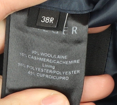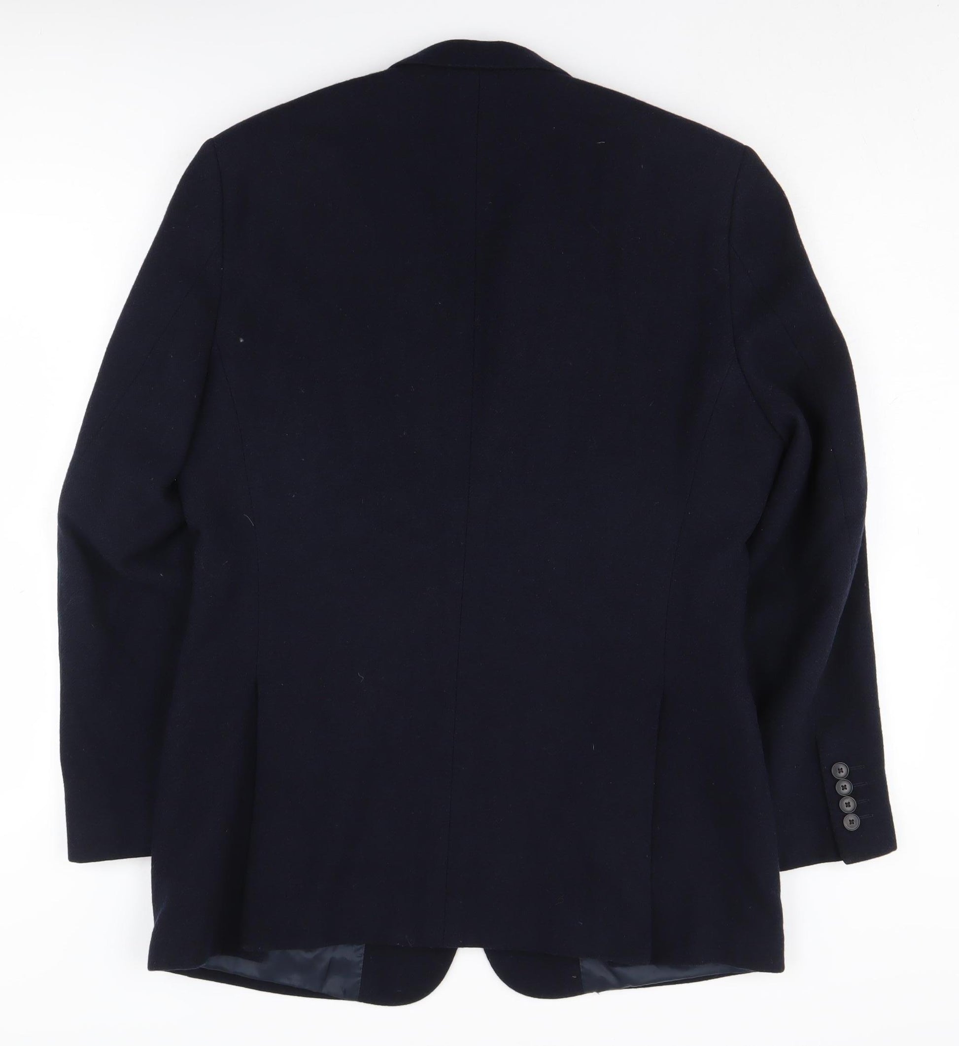 Feel sharp and sophisticated with this classic Jaeger Men's Blazer, meticulously crafted in a luxurious wool and cashmere blend. Perfect for formal and business occasions, this black blazer is a timeless piece that offers unparalleled comfort and style. With a regular fit, it is designed to create a flattering silhouette, while providing a comfortable wear throughout the day. The single-breasted cut and notch lapel lend an elegant touch, making it an ideal option for office wear or formal gatherings. Accentuated with a double-vented back and a versatile two-button front, this blazer ensures a perfect fit and unrestricted movement. Experience the plush feel of its soft, smooth fabric on your skin, complemented by a polyester and cupro lining that enhances durability. With minor signs of wear, it remains in excellent condition, ready to elevate your wardrobe. Match it effortlessly with tailored trousers or jeans for a refined look that speaks volumes about your impeccable taste. Get ready to embrace the cold seasons in style with Jaeger's distinguished craftsmanship. Make a confident statement with this must-have wardrobe staple. Secure your order today and enjoy a touch of elegance in every step you take.
