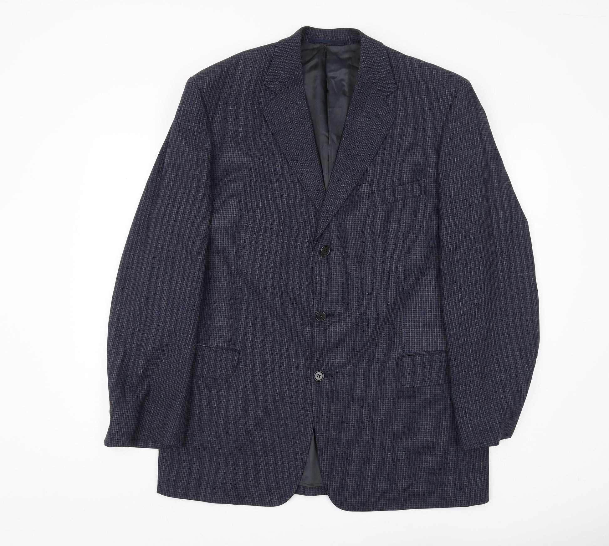 Elevate your wardrobe with this sophisticated Jaeger men's blazer, perfect for both business and formal occasions. The blazer showcases a timeless check pattern in a classic blue hue, adding a touch of elegance to any outfit. Crafted from 100% wool, this tweed blazer offers comfort and durability, ensuring it withstands the test of time. Featuring a single-breasted design with a three-button front and notch lapel, this blazer embodies classic style. Its long length and classic fit make it ideal for the autumn and winter seasons, providing warmth without compromising on style. The jacket is equipped with inner pockets, adding functionality to its sleek design. A single-vented back enhances mobility, while the three-button sleeve design refines the overall appearance. Lined with a viscose/rayon and acetate blend, this blazer promises a smooth feel against the skin. It commands presence in any professional setting, making it perfect for business meetings and formal gatherings. Maintain its pristine condition with dry cleaning, ensuring it remains a staple in your wardrobe for years to come. Embodying a blend of British tailoring tradition and modern practicality, this Jaeger blazer is a must-have addition for the discerning gentleman. Sophistication meets comfort in this essential piece.