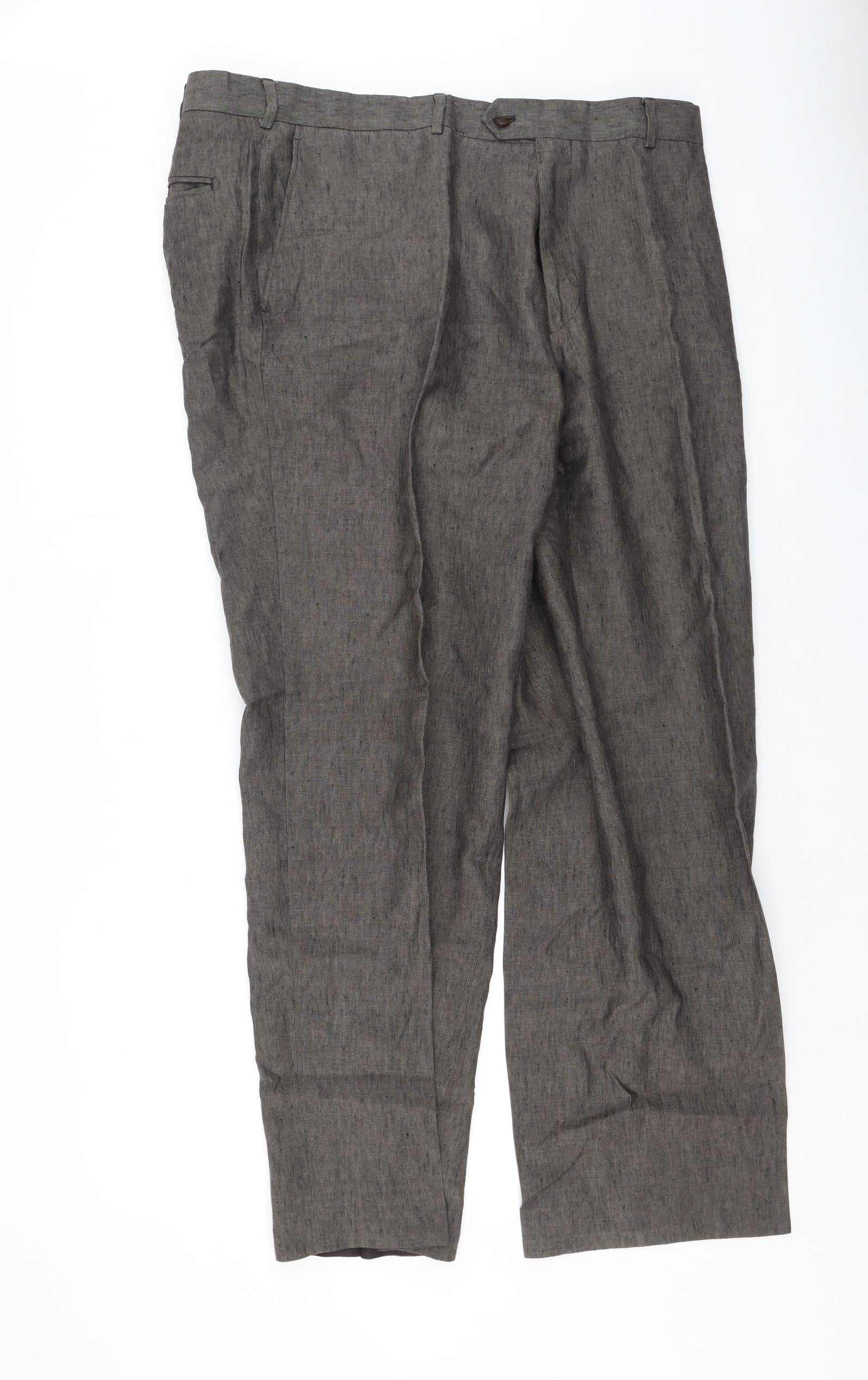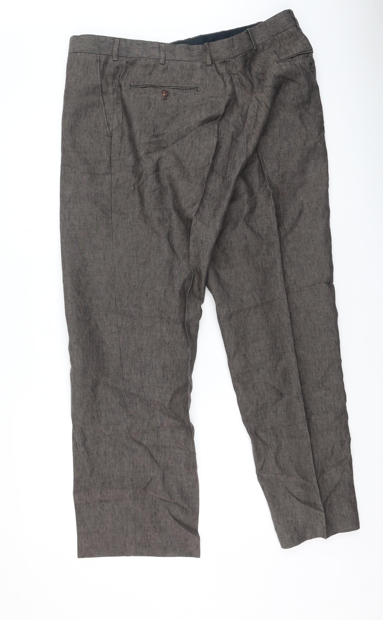 Mens Brown Linen Trousers Size 40 L34 in Regular