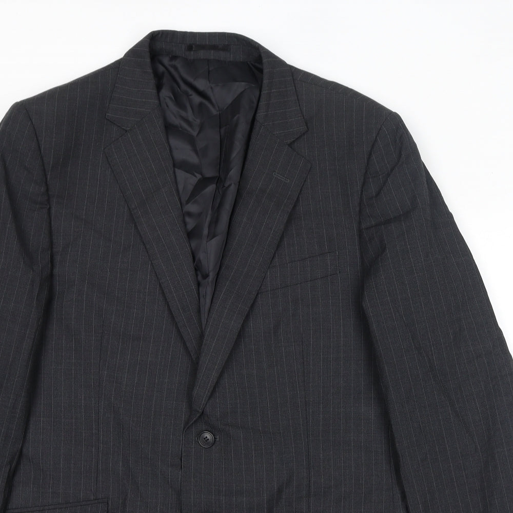 Mens Grey Striped Wool Jacket Suit Jacket Size 42 Regular - Shoulder Pads