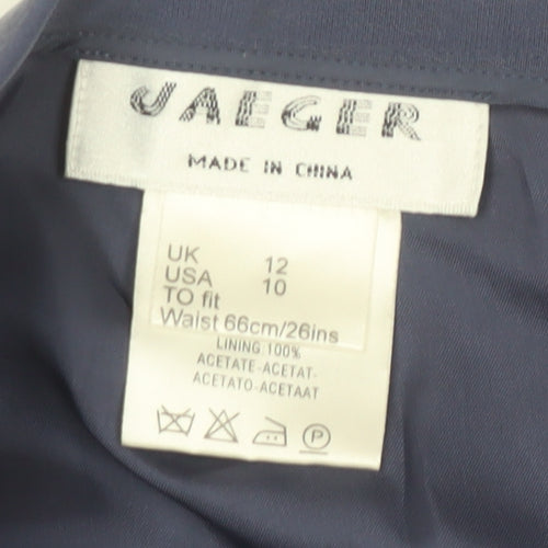 Experience timeless elegance with this Jaeger women's pencil skirt, impeccably crafted to serve both business and casual occasions. The sleek knee-length design in blue offers a sophisticated straight & pencil style, perfect for a streamlined silhouette. Suitable for all seasons, the skirt is detailed with a classic button and zip closure, ideal for a smooth, comfortable fit. Despite a minor stain on the front, this piece remains in very good condition, ensuring a stylish addition to your wardrobe. Elevate your fashion ensemble with this versatile yet refined skirt that speaks to understated elegance.