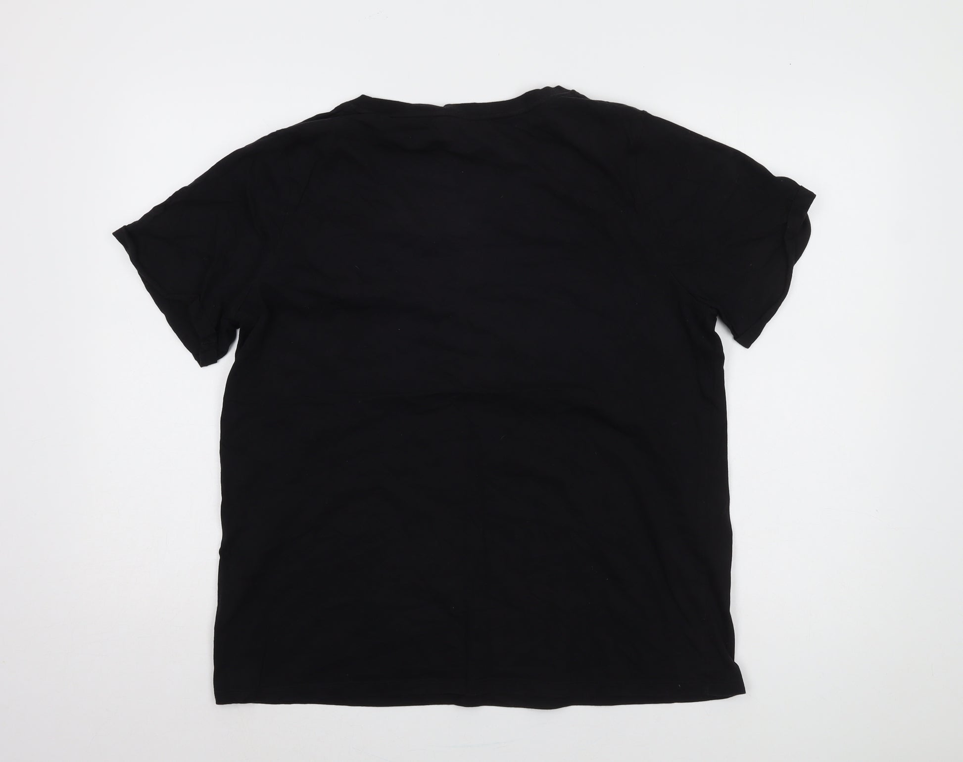 Zara Women’s Black V-Neck Basic Cotton Short Sleeve T-Shirt Size L